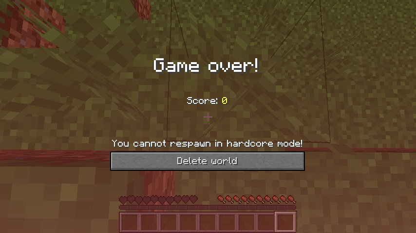 You will see: "Game over" and "Delete world"klick "Delete world"