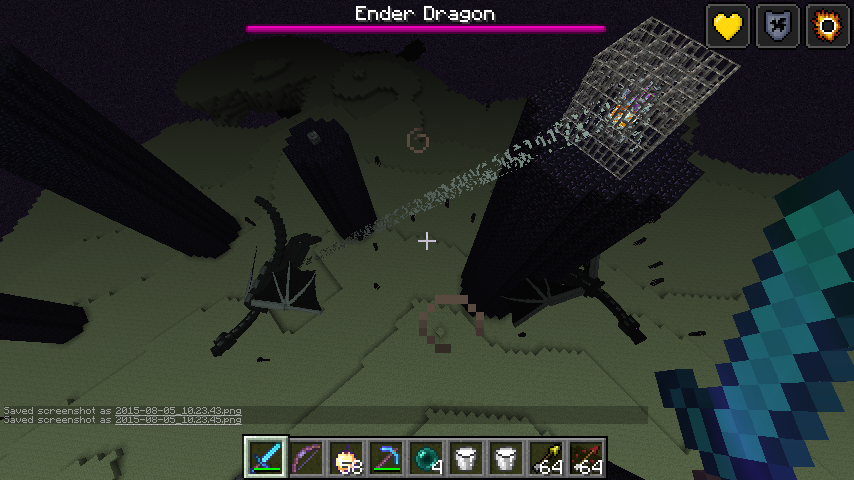 So I go into the End, and halfway through my fight with the ender dragon (in survival) I realize that there are 2 ender dragons. In the screenshots you'll see that when I kill one of the dragons, there is still a bit of health left on the boss bar. Once I kill both, the boss bar is gone as normal, and the ender portal, both fountain and to the infinite end is there. In another screenshot you'll see that when one ender dragon is on top of the fountain, the other is desperately trying to get in too. So this must be a bug.