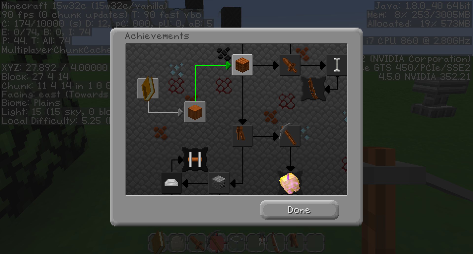 Proof: http://i.imgur.com/mQ4PlAY.png (upper is normal gameplay, lower is with the advancement screen open, as well as in the tab and as the advancement)