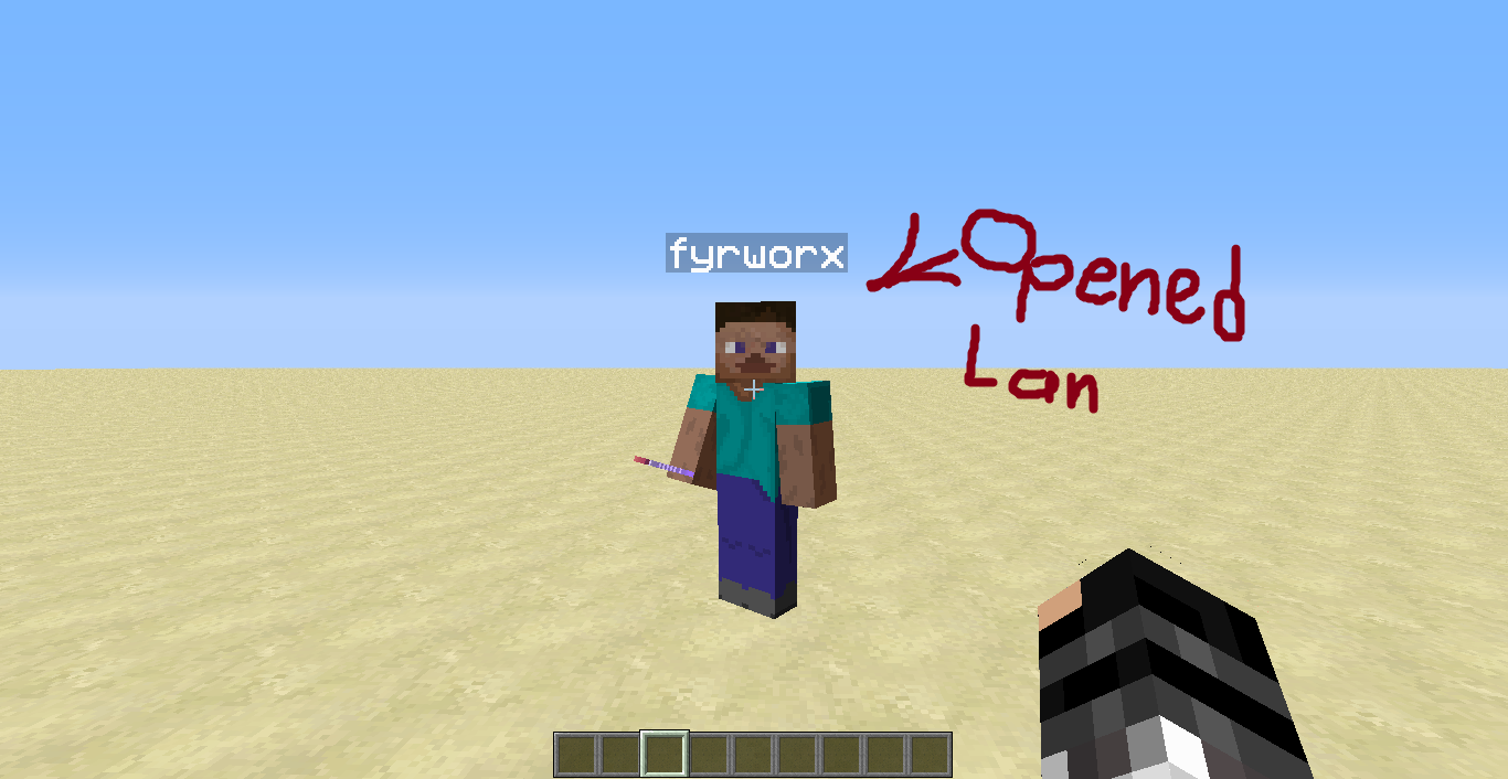 3. e.g. Notch opens two Minecraft windows on his CPU, with 1 window Dinnerbone and the other with Notch's account. Notch opens a LAN world