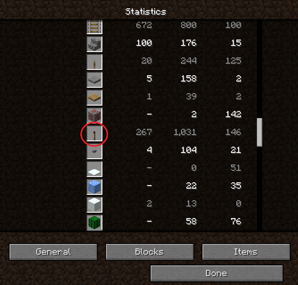 Picture of the Redstone Torch in the block statistics is showing a "off" Redstone Torch.