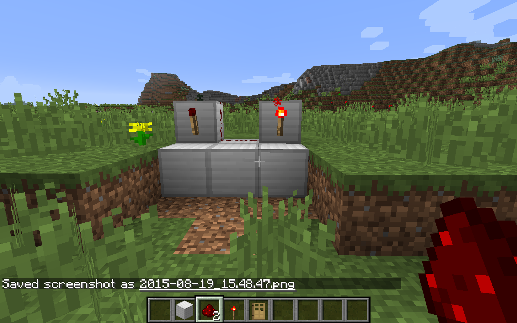 put two redstone torches on two blocks the put redstone dust connecting the two torches or look at picture 3
