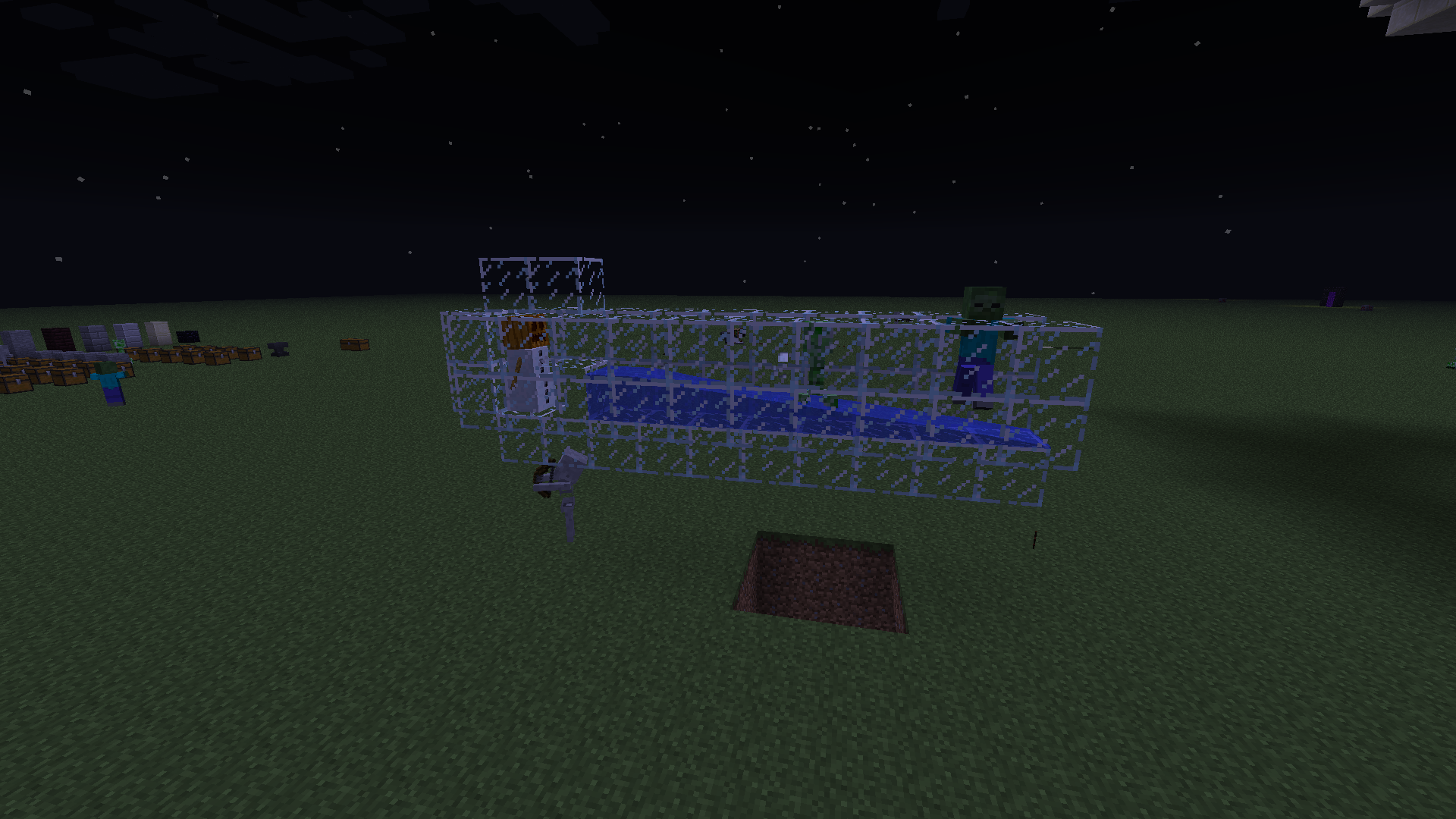 (As a side note, all 3 monster types sunk into the ground one block's worth, every single time they dropped from the stream; client-side visual bug only; their hit boxes were where they should be.)
