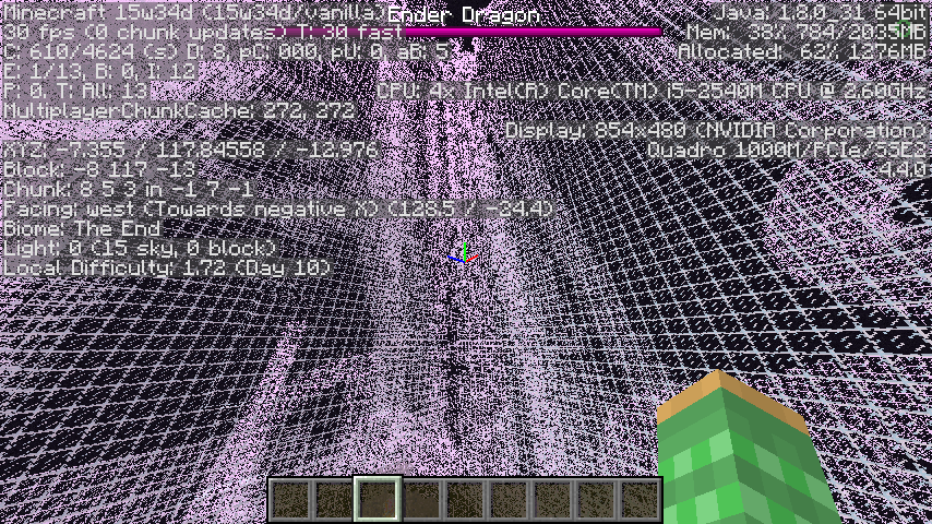 6) check the stone area under the main End island for unexpected vertical holes in it.