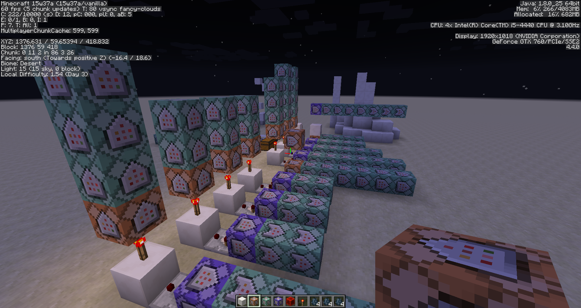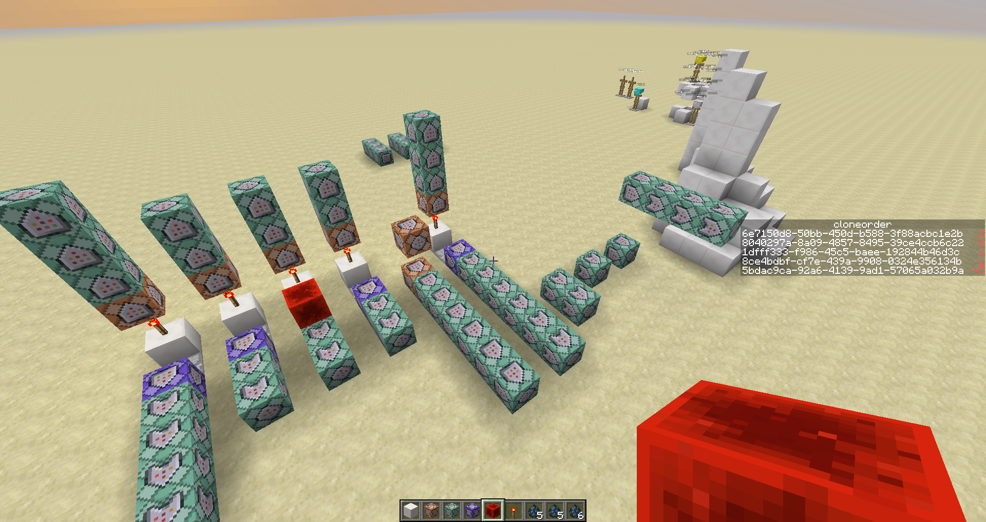 Screenshot 1 : While activating this map. I was making custom /clone command. No size limit, include rotate/mirror functions, but slow. It clones progressively, and randomly. It was activating over than 100 commands per tick. (include execute individually)