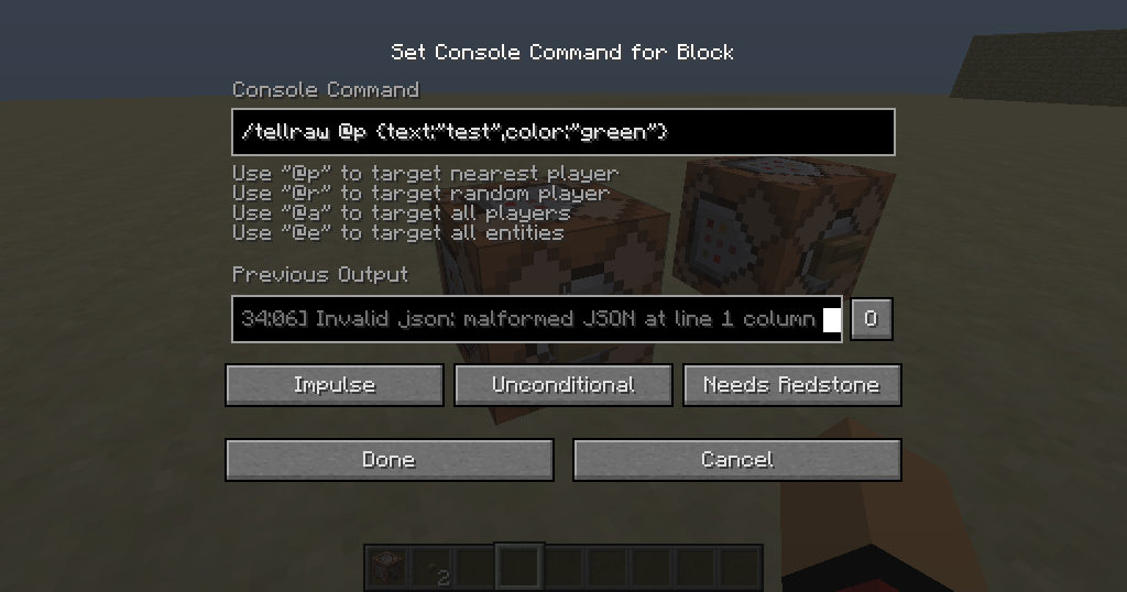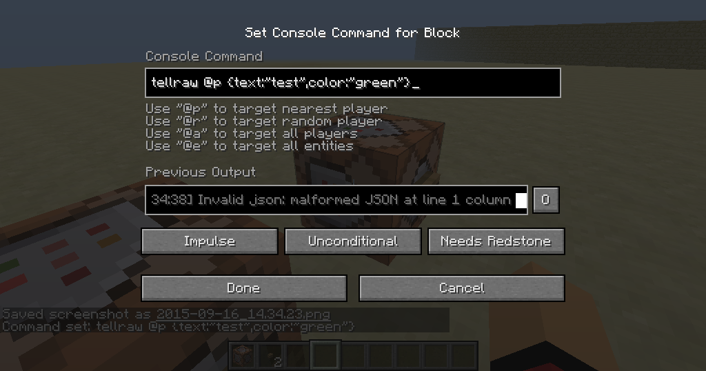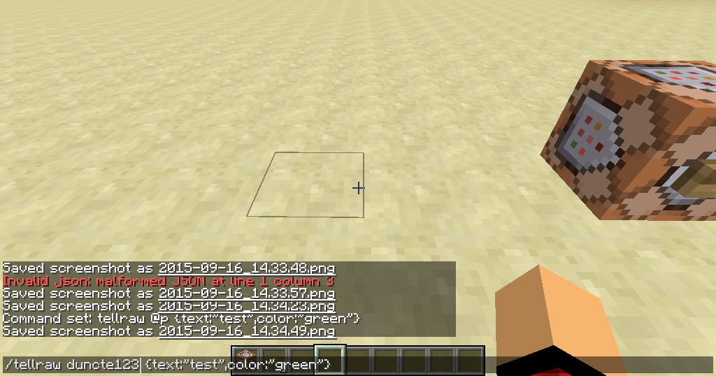 I tried an old minecraft map to update to 1.9, but the tellraw command did not work I got all but one error message (screenshots)