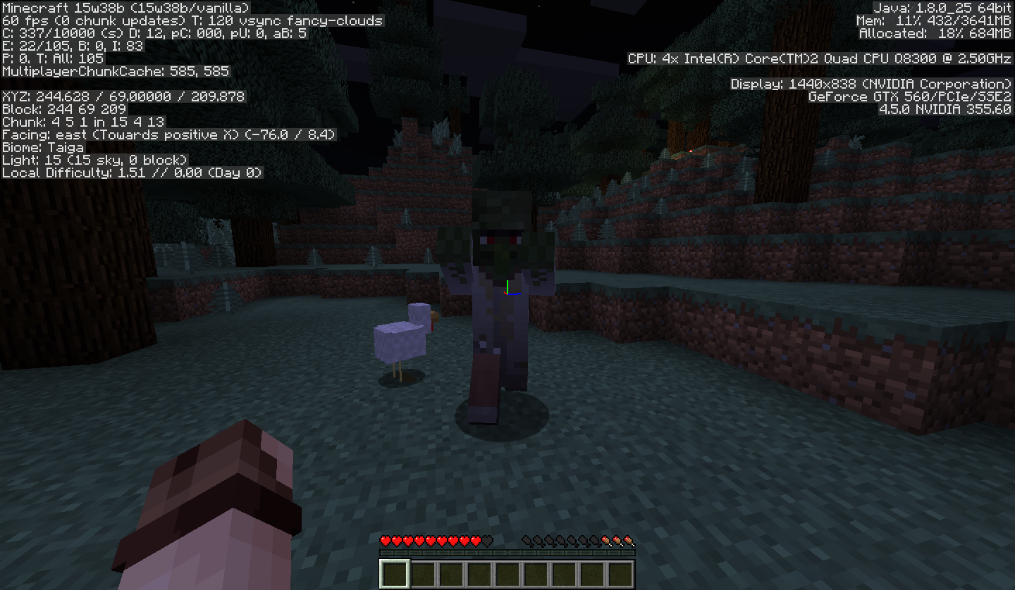 Skeletons still shoot arrows (which they appear out of thin air) and zombies hunt and kill. Mobs can be heard and injured but are completely invisible.