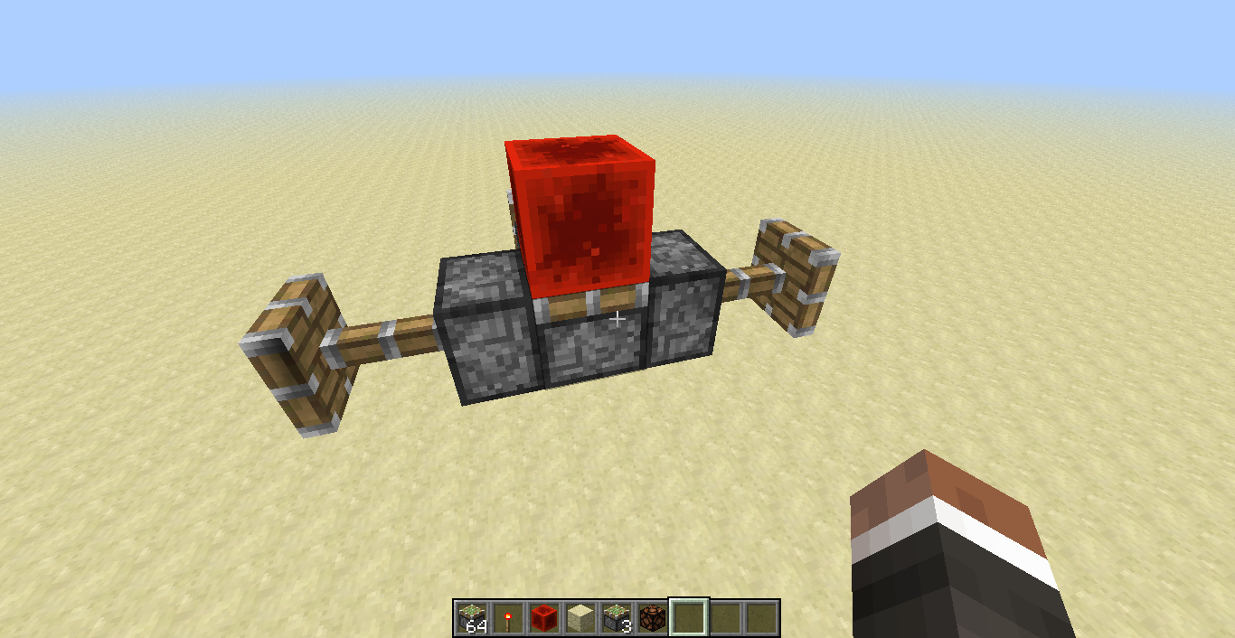 1.Place a sticky piston with its sticky side facing up 2 blocks above the ground