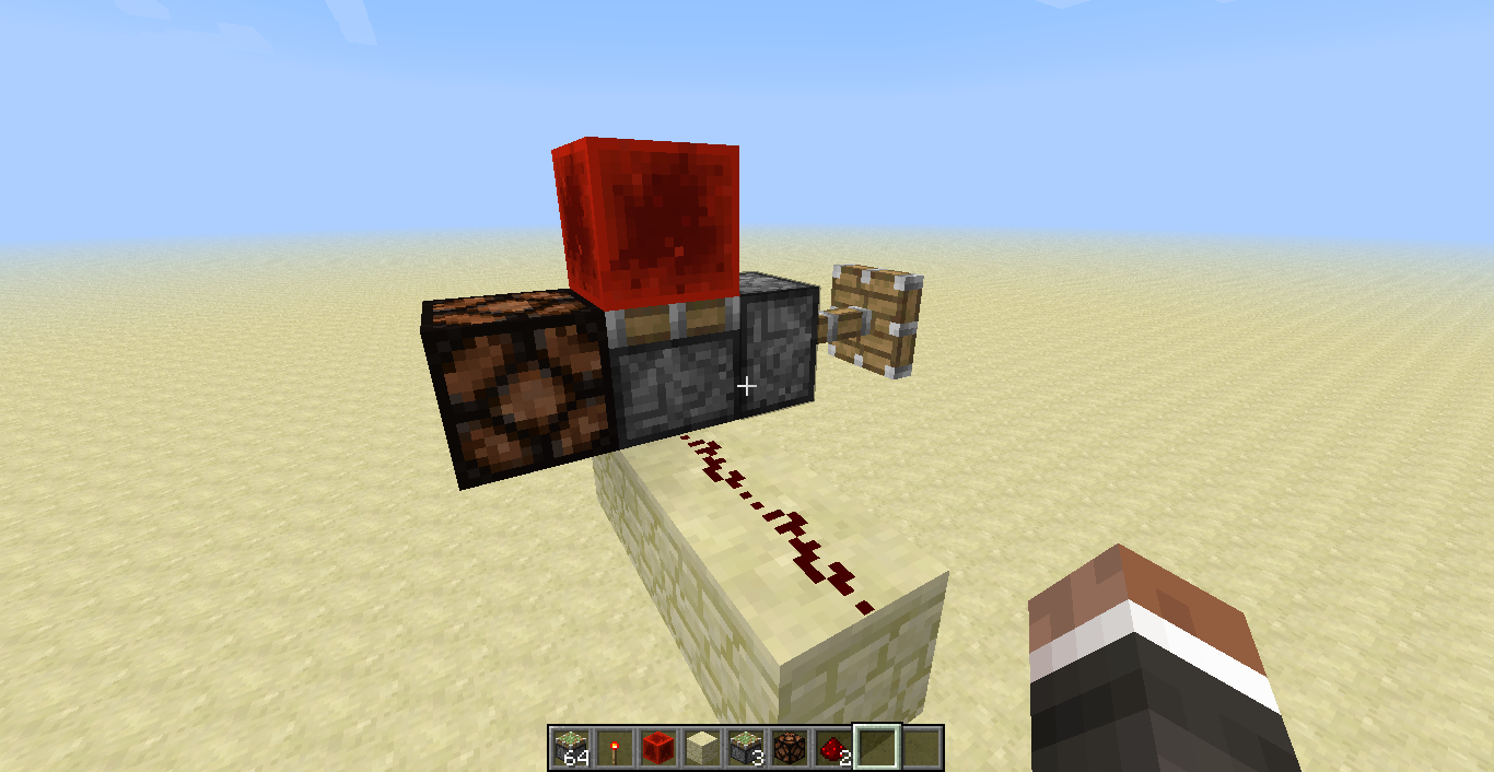 3. Place piston to the left of the sticky piston (with the redstone block above it) this piston should extend.