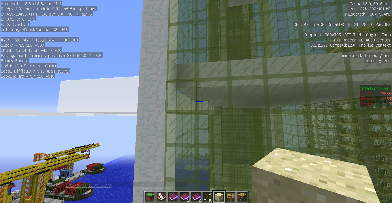 As you can see on Screenshot 1, the Cloud behind the glass (dont confuse with the wool) is rendered correctly on height 126.. But on 2 (height 131), it's rendered wrongly.