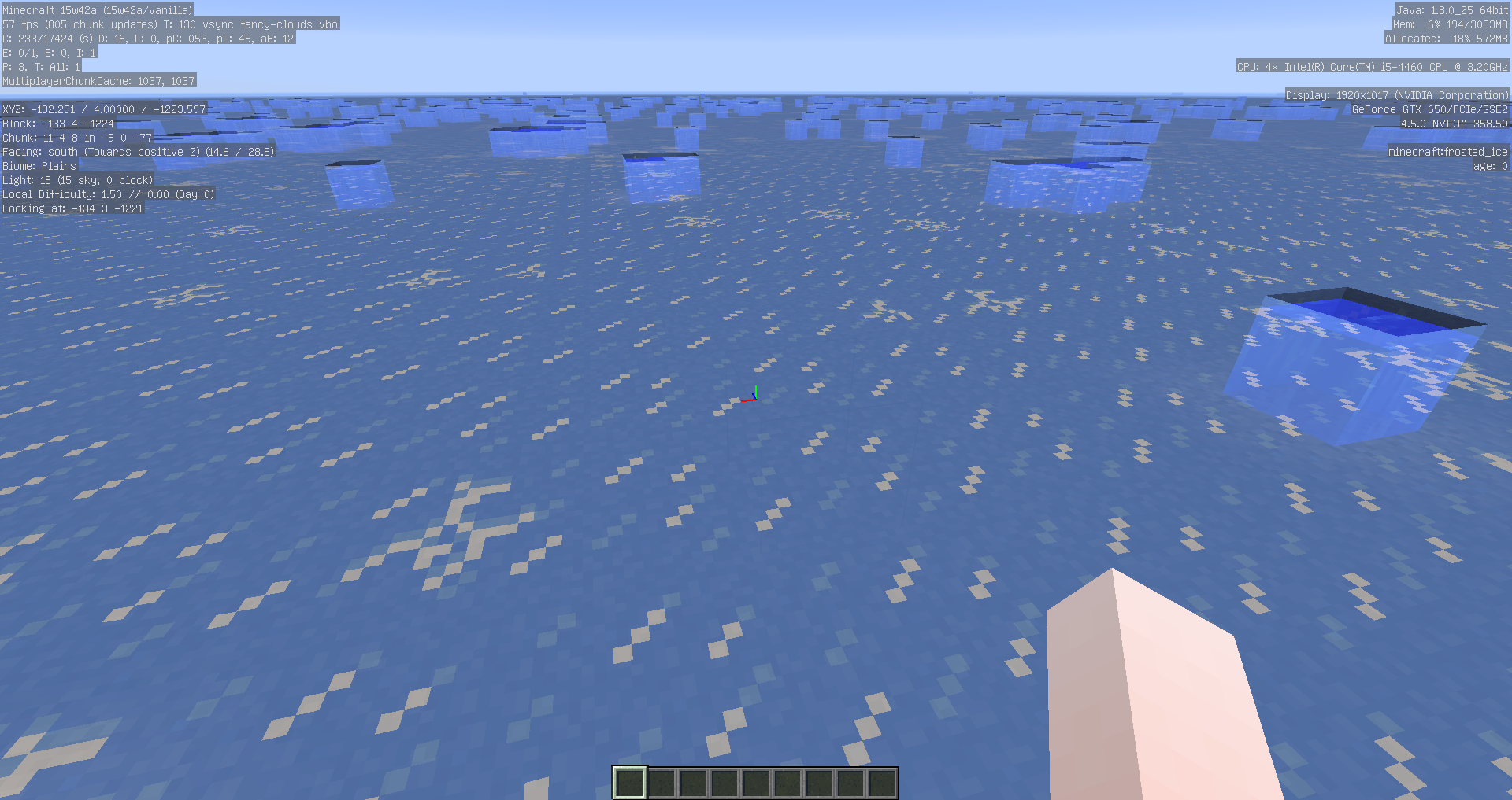 Frosted ice in the Superflat Customization menu displayed to the air.
