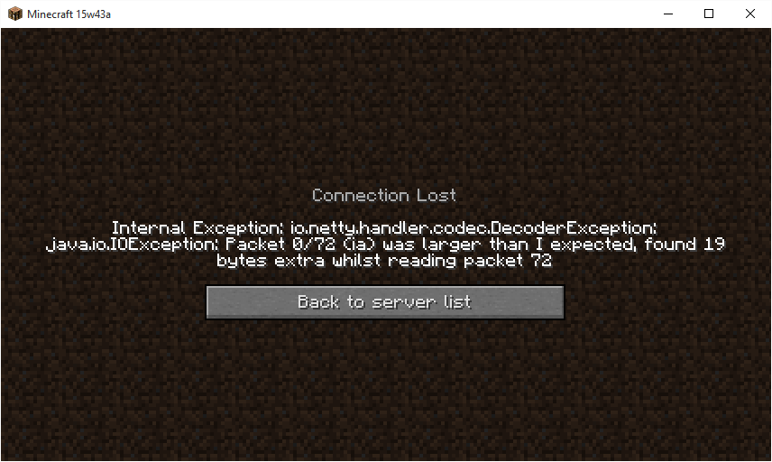 Connestion lost with server on joining. This didn't happen immidiately but a few minutes later when i tried to explore already created land with a lot of passive mobs in it.