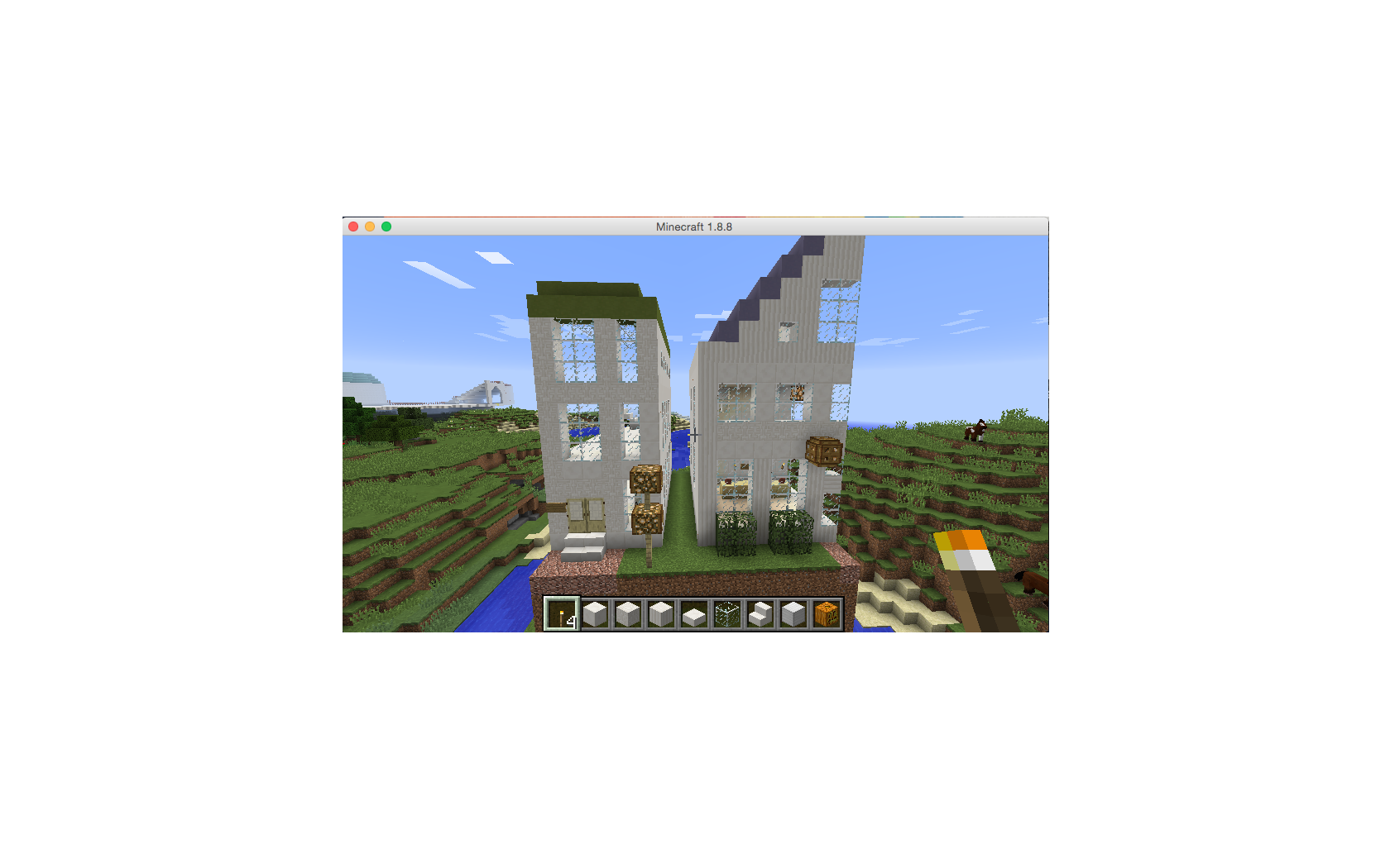 2. Place a red wool block on top of the place where the blocks were duplicated from