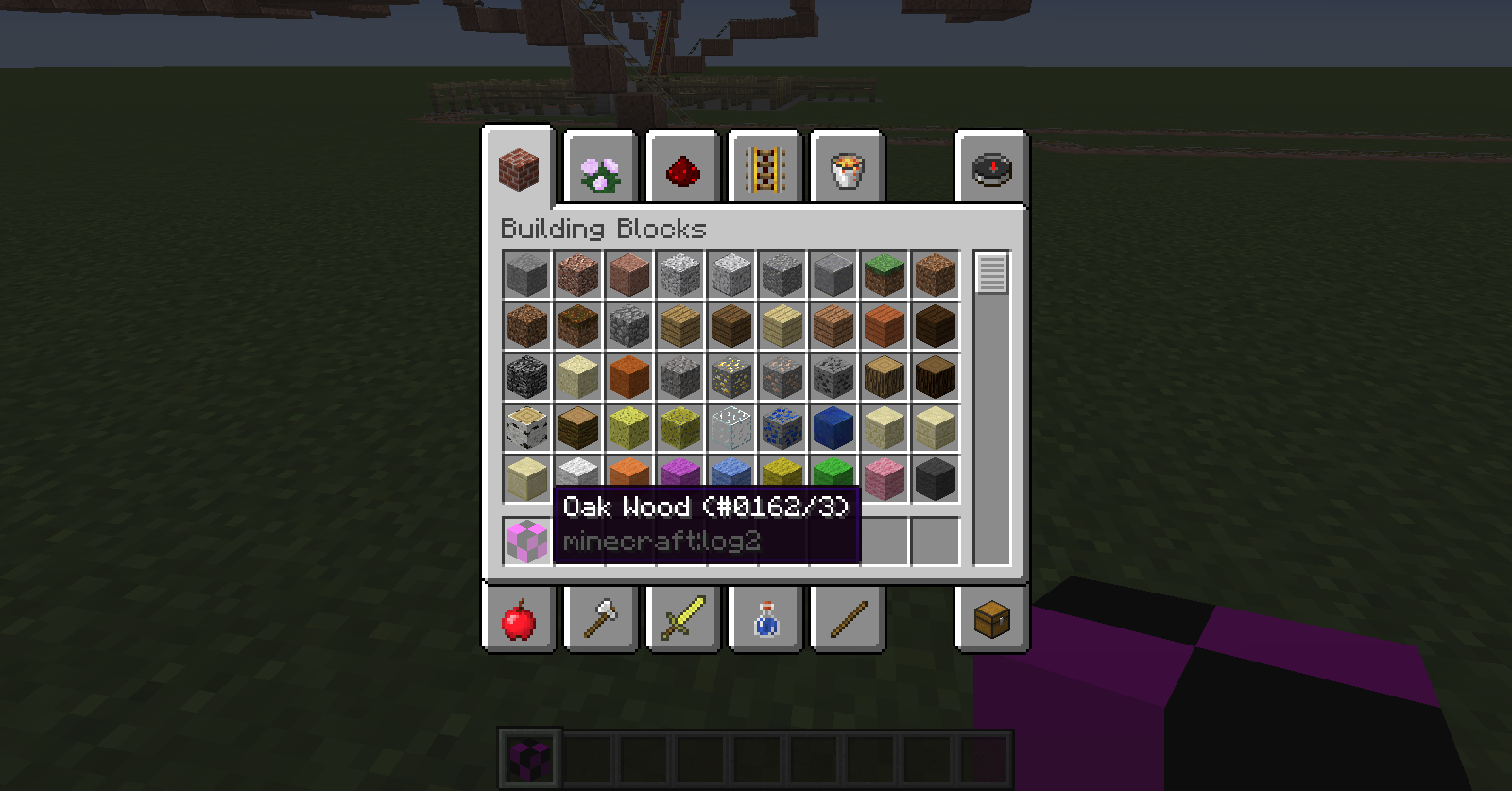 I thought when I placed down the glitched log2 with a data value of 3 it would just default to data value 0, being an acacia log.
