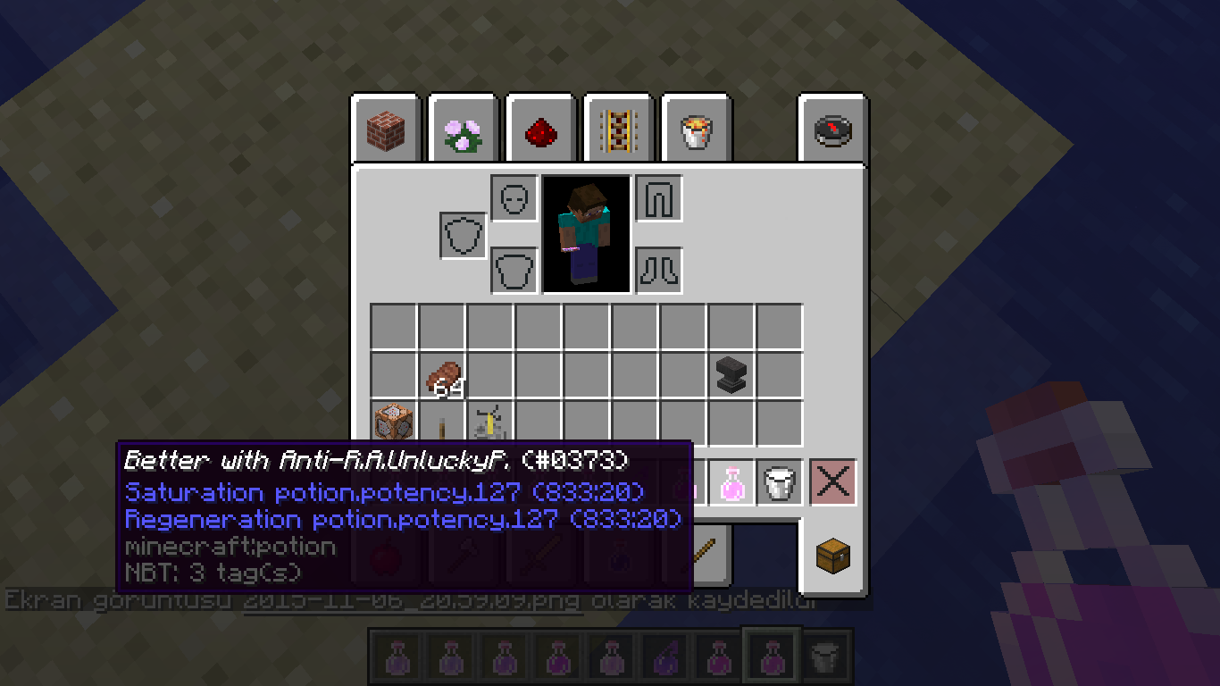 Two good potions like in attachments hurted steve in creative mode.
