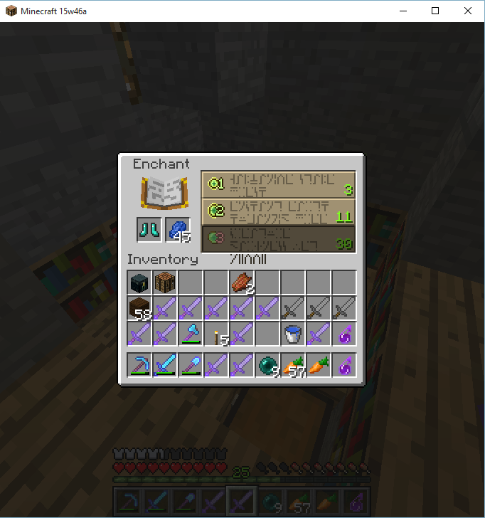 When I was trying to get feather falling IV (it didn't appear after like 15 enchants :/ ). I saw this weird bug *see attachment.