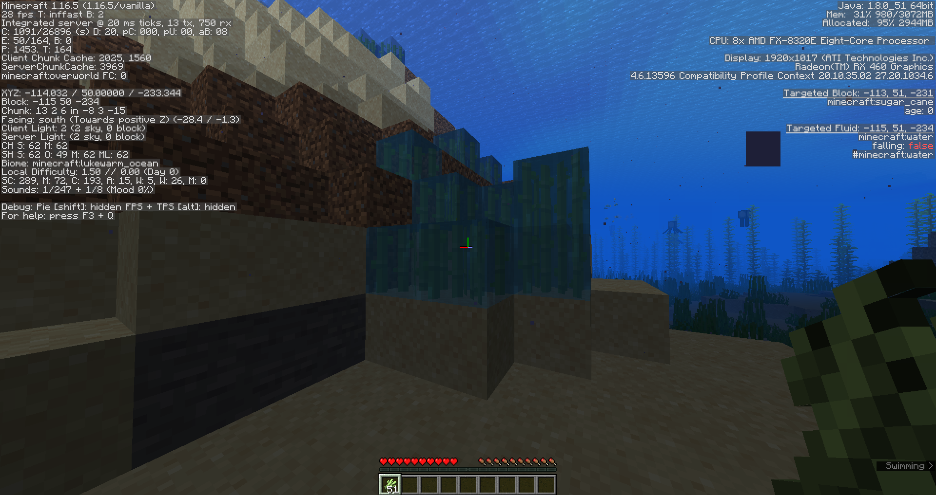 Weird sugarcane underwater is probably one of those "intentional bugs".