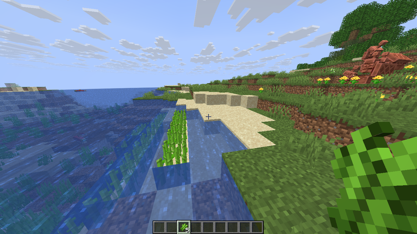 Which is the difference in put a sugar cane in the water on a superflat world and a normal world??
