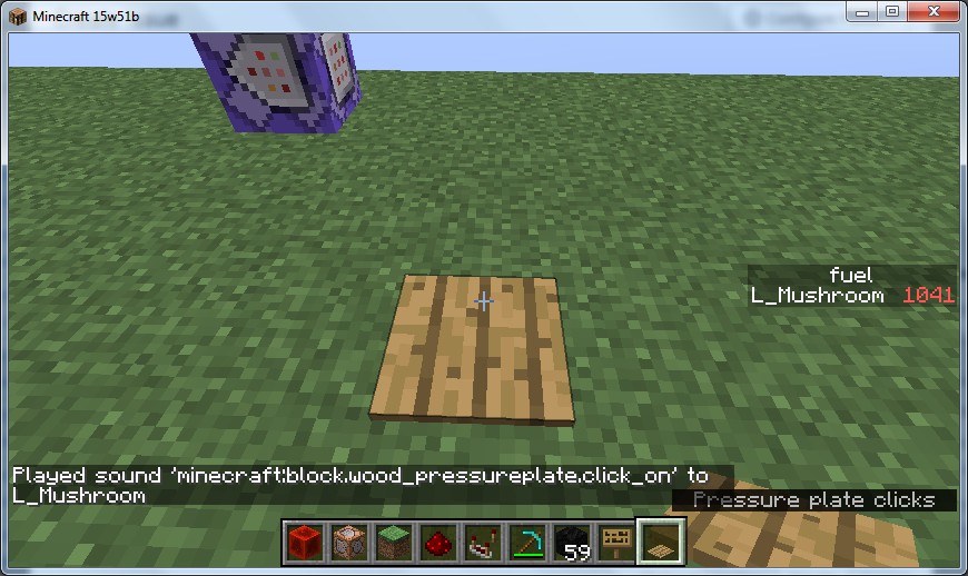 /playsound minecraft:block.wood_pressureplate.click_on @p/playsound minecraft:block.wood_pressureplate.click_on @pIt plays the sound like the one that clicks the GUI button in minecraft instead of the one that step on the wooden pressure plate, but if the sound subtitle shows, they look the same in subtitle.