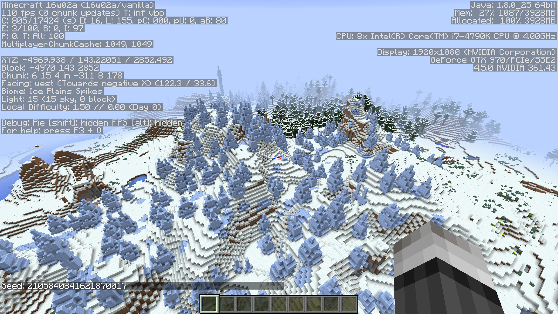 When generating a world, the Ice Spike biome is replaced with Ice Plains.
