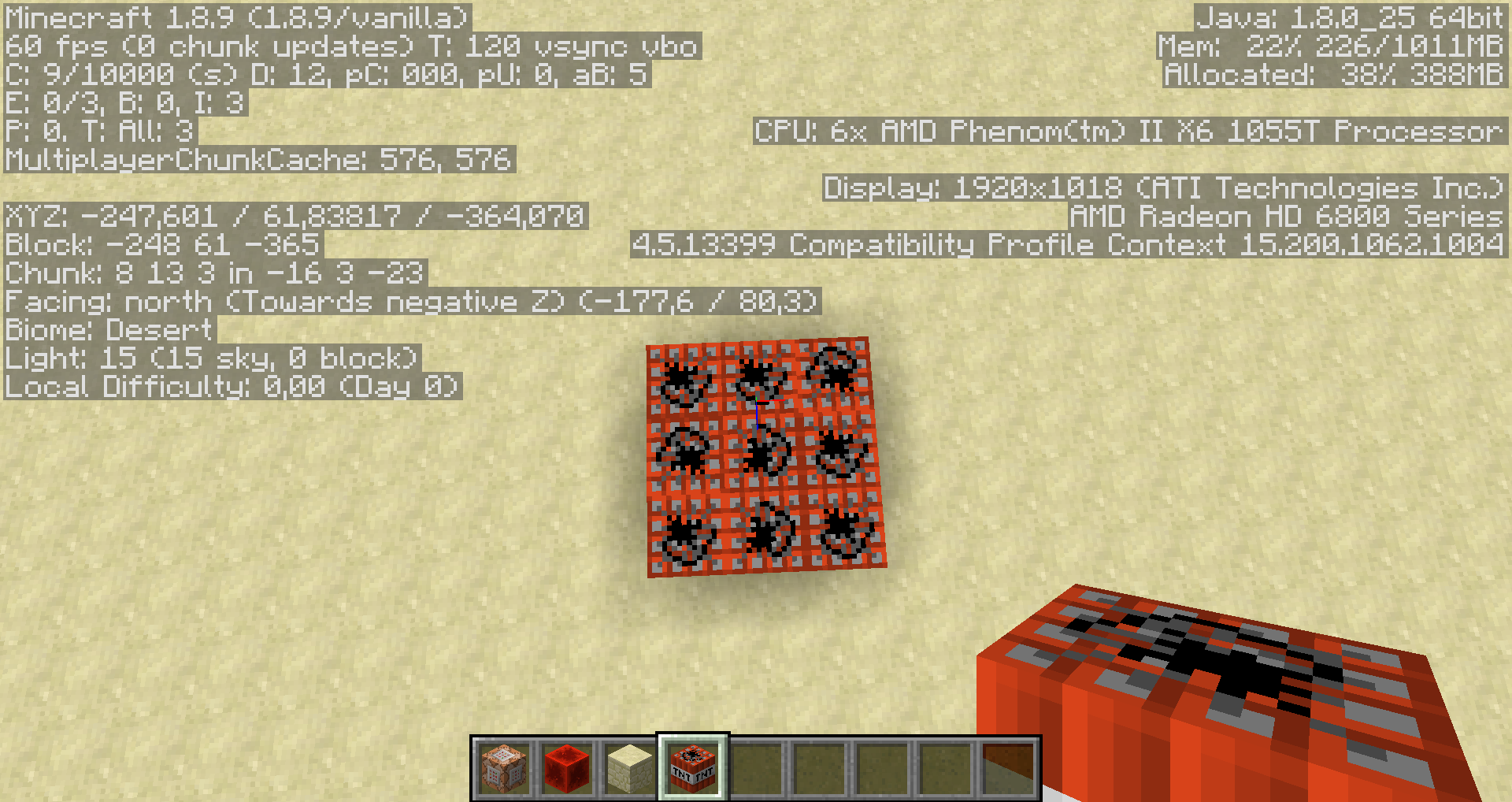 In 1.8.9 the TNT block has alternative textures, however in the 1.9 snapshots it is only using one texture.