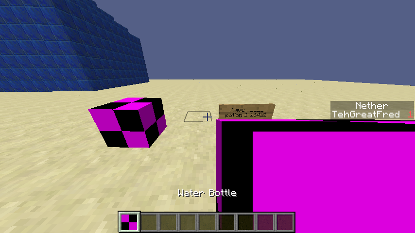 it gives me a water bottle with the missing texture. if I have the wrong command please tell me and remove this post.