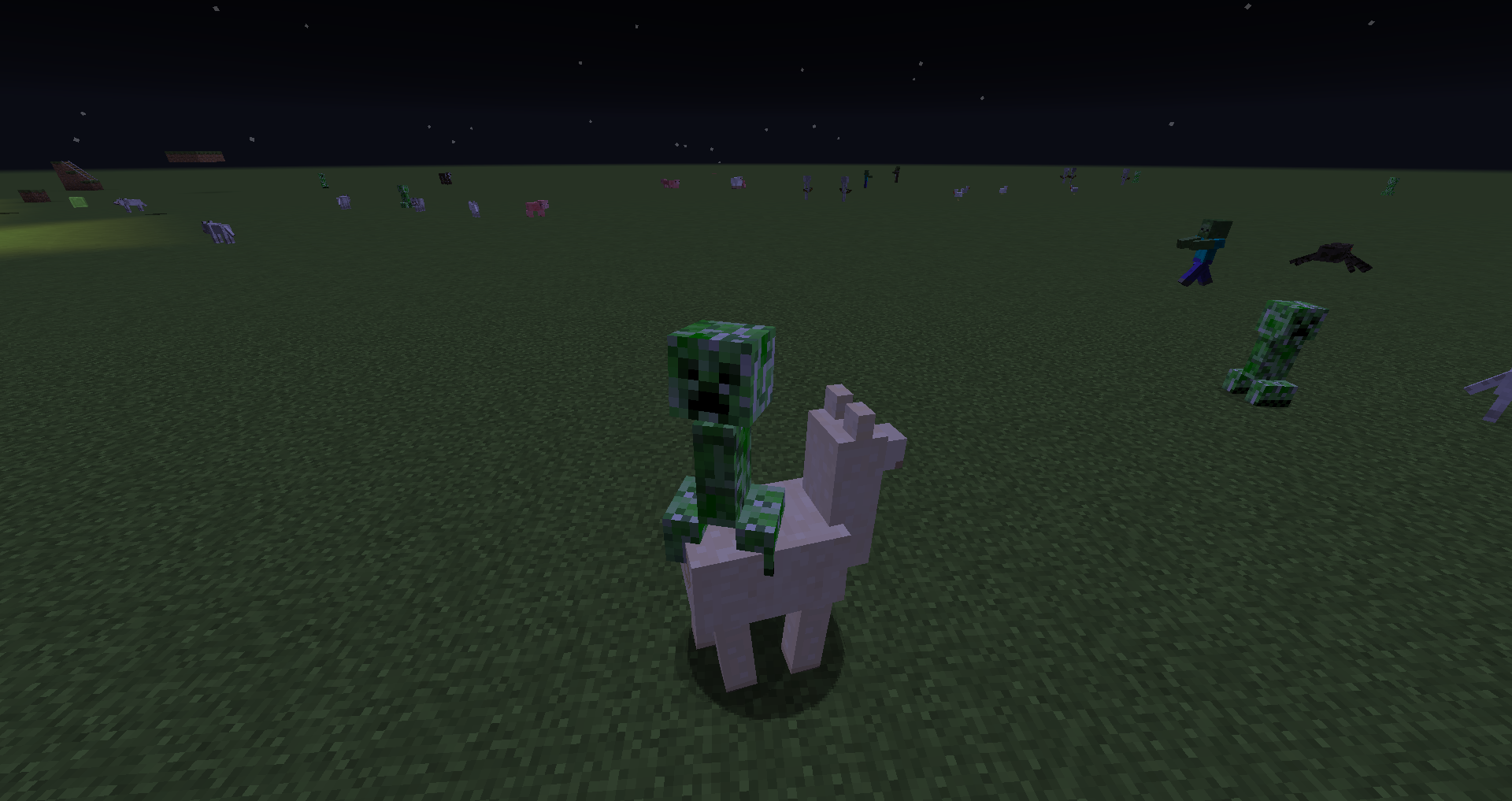 /summon llama ~ ~1 ~ {Passengers:[{id:creeper}],Tame:1}/summon llama ~ ~1 ~ {Passengers:[{id:creeper}],Tame:1}Make Creeper explosion.
