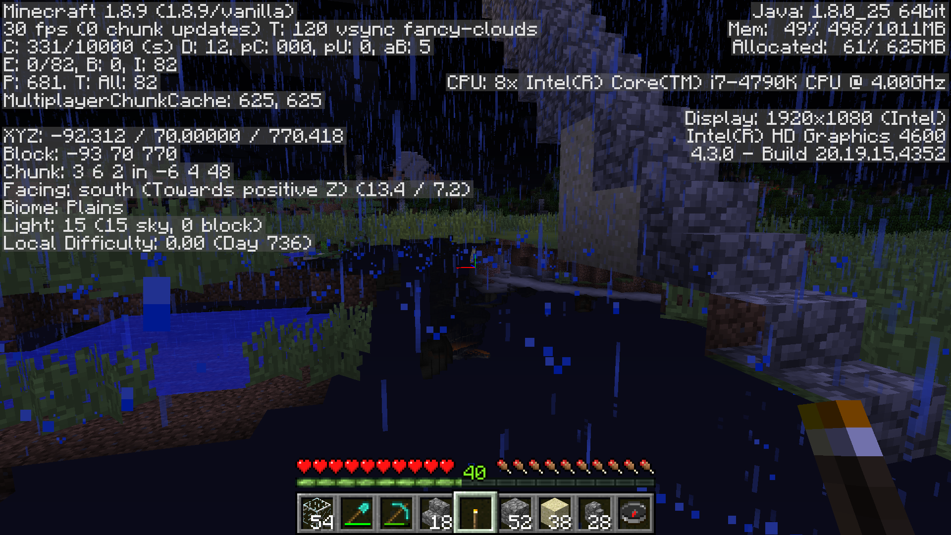 So I was walking around and it was raining. Then all of a sudden the ground turned transparent and I could see through to a nearby cave. See the attached screenshot for system details.