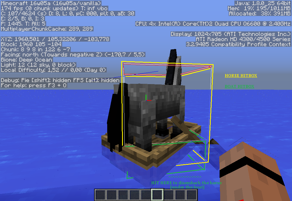 I think this bug report is legitimate because... The problem of hitbox (horse inside boat) solved incorrecty, then the bug persists in other "form"; the solution of first bug (hitbox) created un new bug (horse do not want to go in boats).