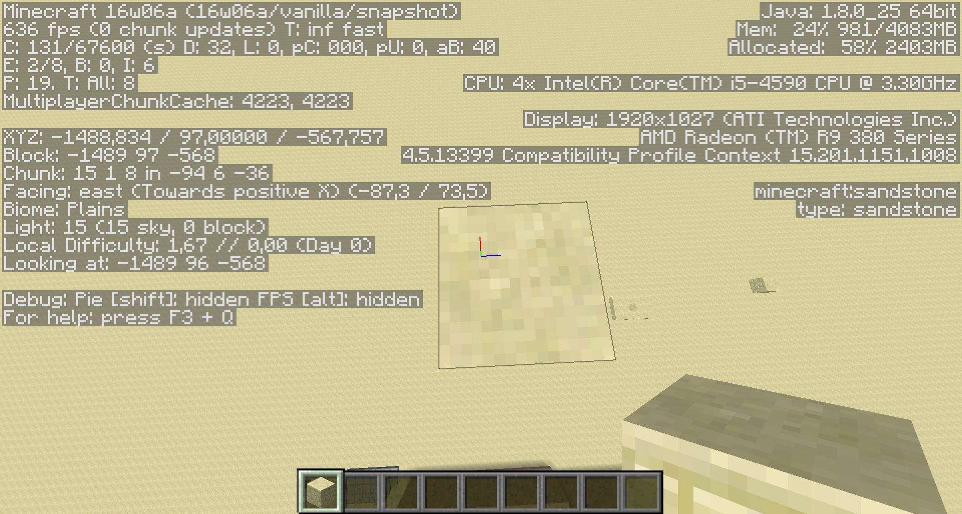 Then mark that block somehow and stack up another 17 blocks (the chunk y coordinate should say 1 if you are standing on top of the block). You can also stack up higher if you want, that makes no difference.