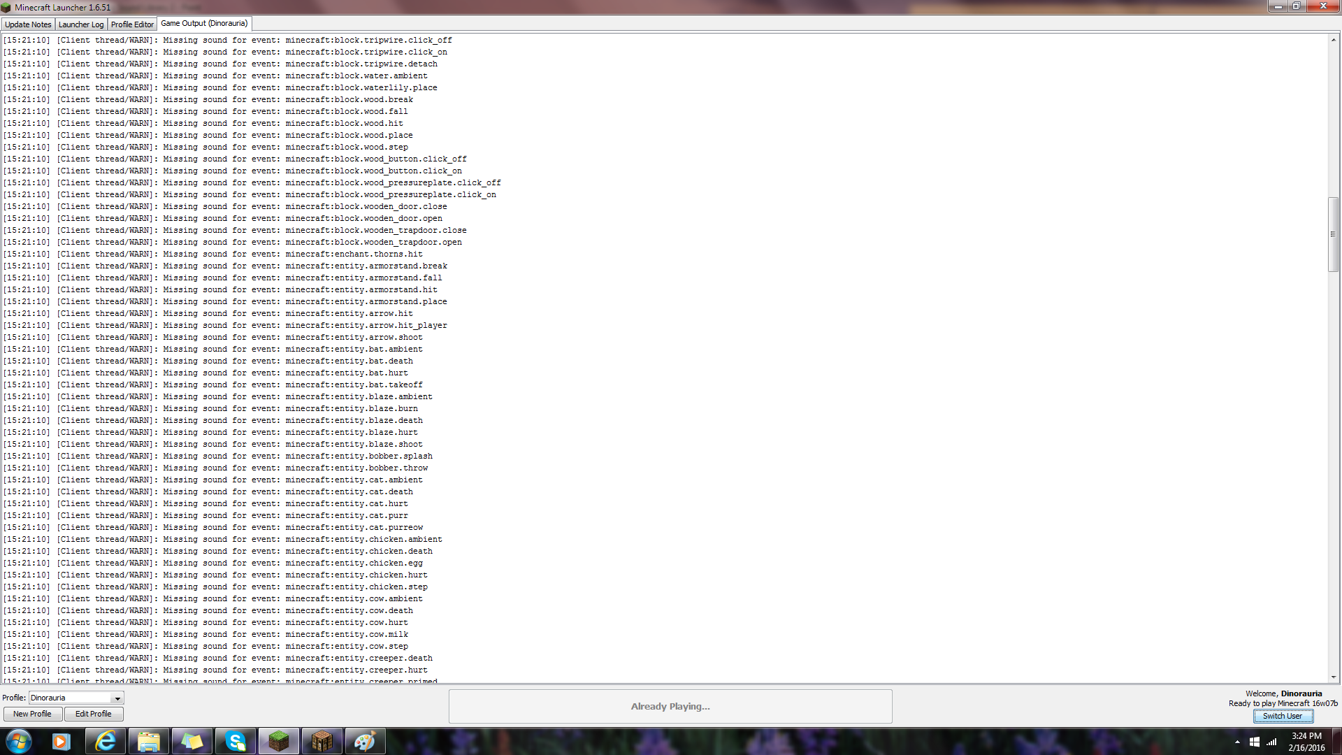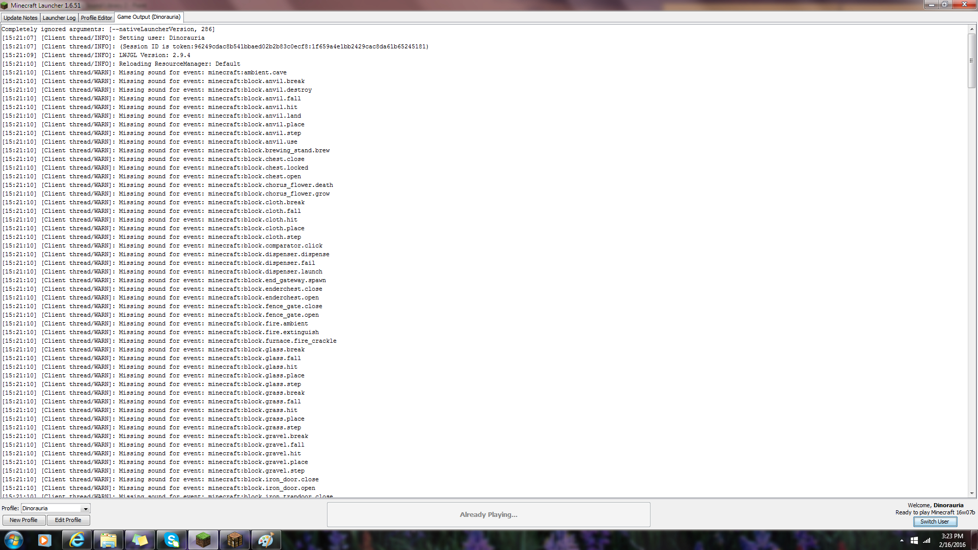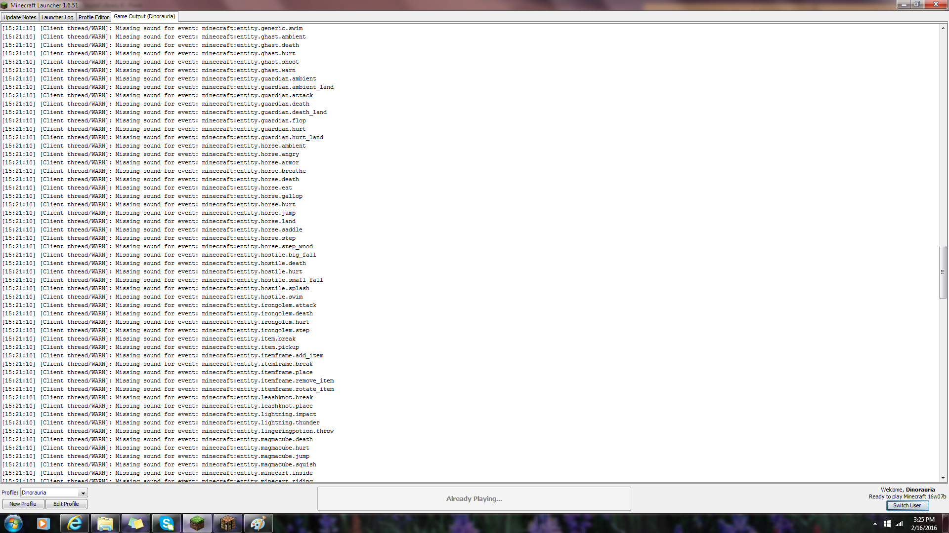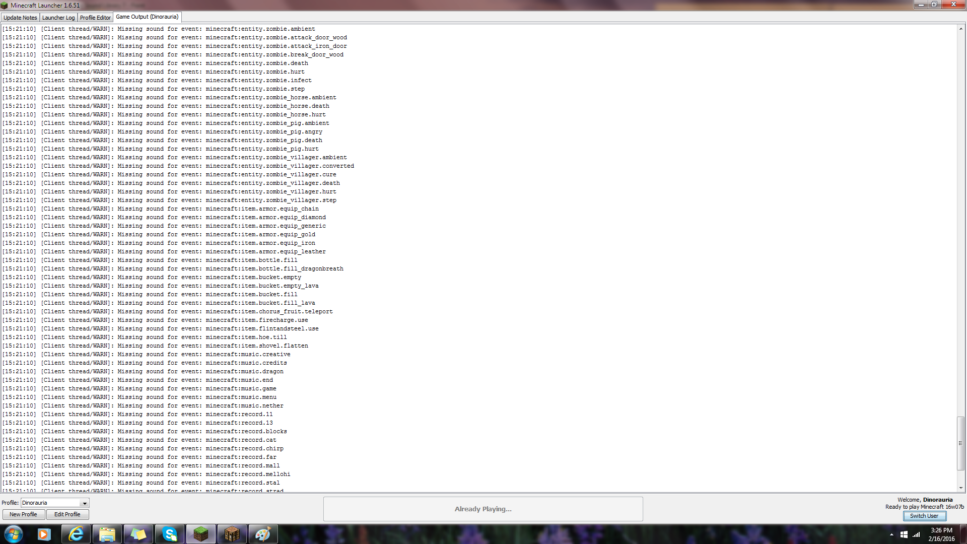 Sound library missing from snapshots version 16w04 and upwards, even if snapshot was released before that week.