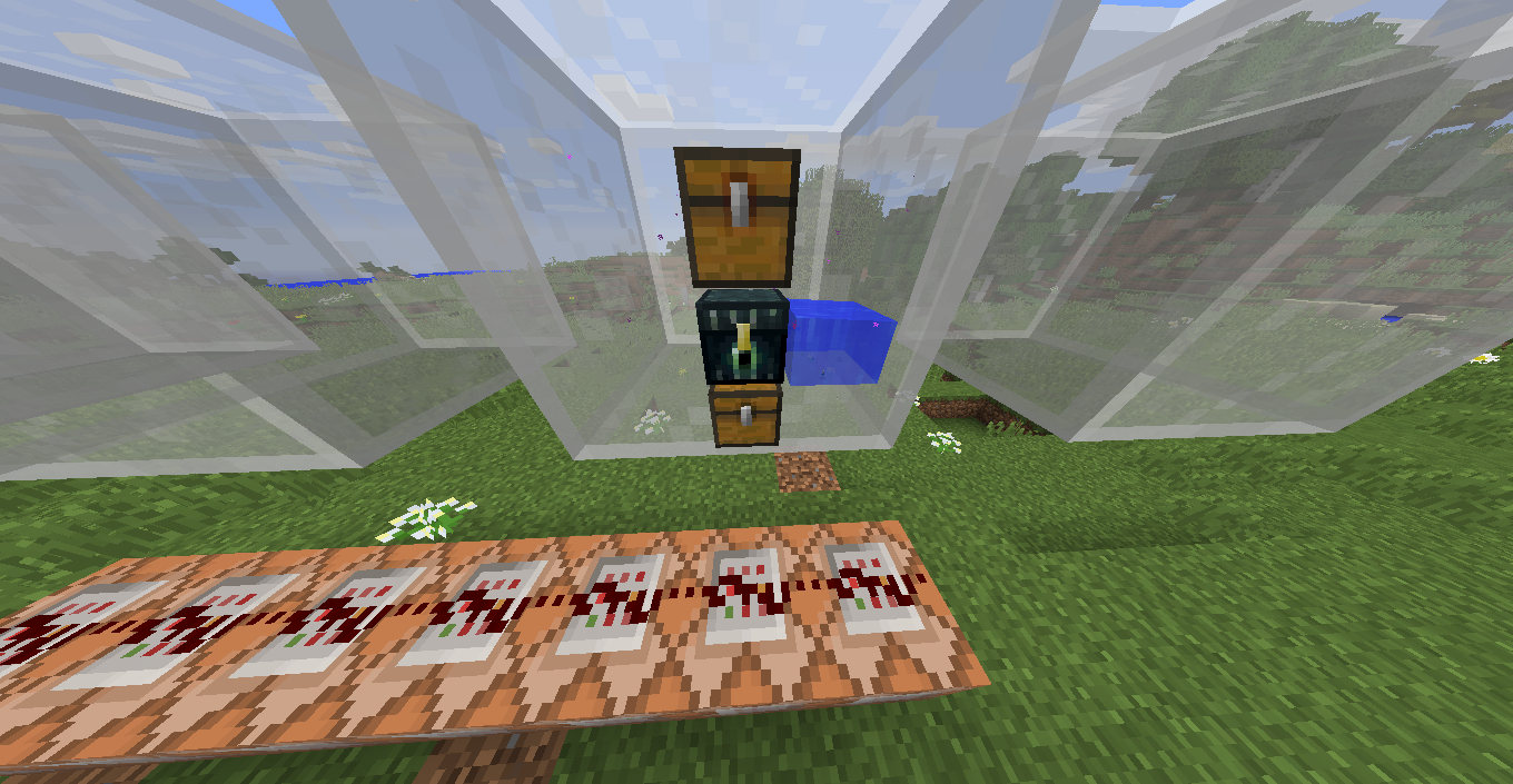 Water, chests, item, particles, all the entities and slime blocks are rendered in front of semi trasparent blocks placed in the mobs' head slot in 1.8.9 and 1.9 snapshots, i don't know in older versions