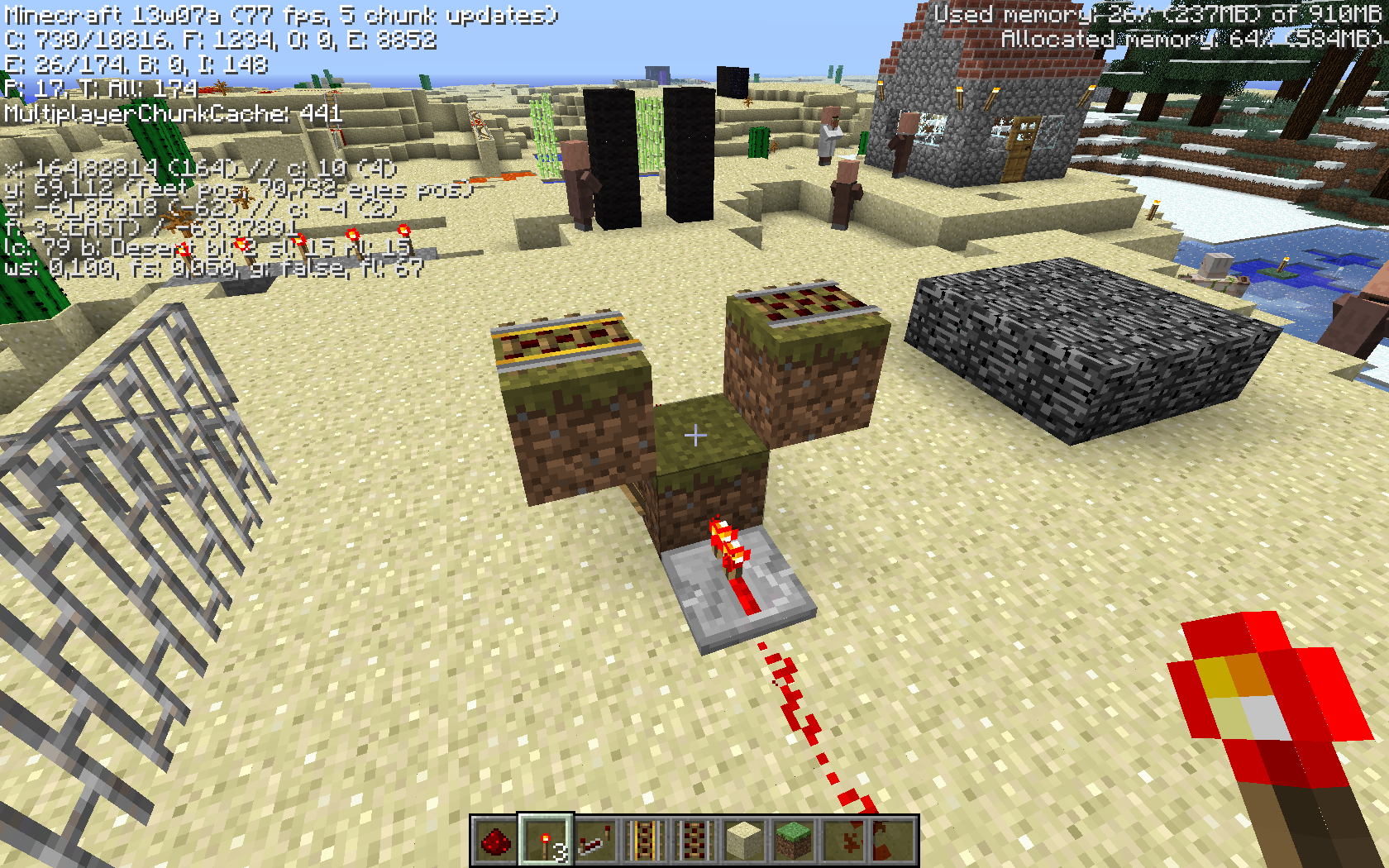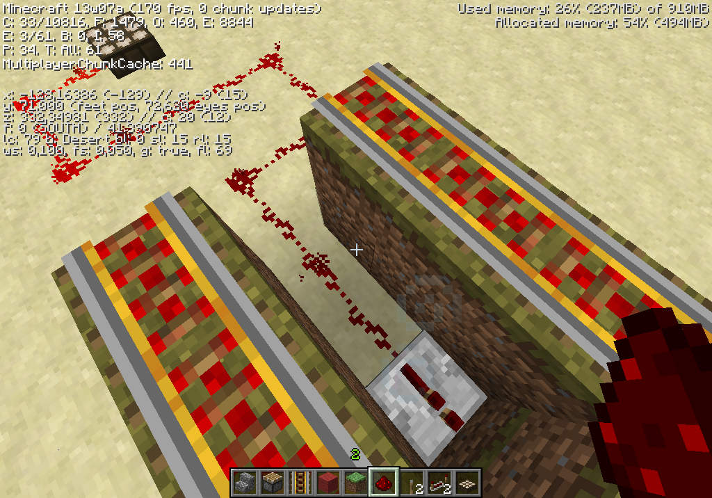 The problem lies in the fact that the repeater тупливает, and not one, but several, in different ways, at different times, in different place, on the screenshot shows that the repeater works, although to do this he must not, the power source is there. Such a phenomenon I have started with the picture 13w06a, previously, this was not respectively (picture 1), immediately arises because of this error with rails (unfortunately the picture show can not, because the time of day has changed, and the whole system works from the sensor sunlight), such a scheme (figure 2).