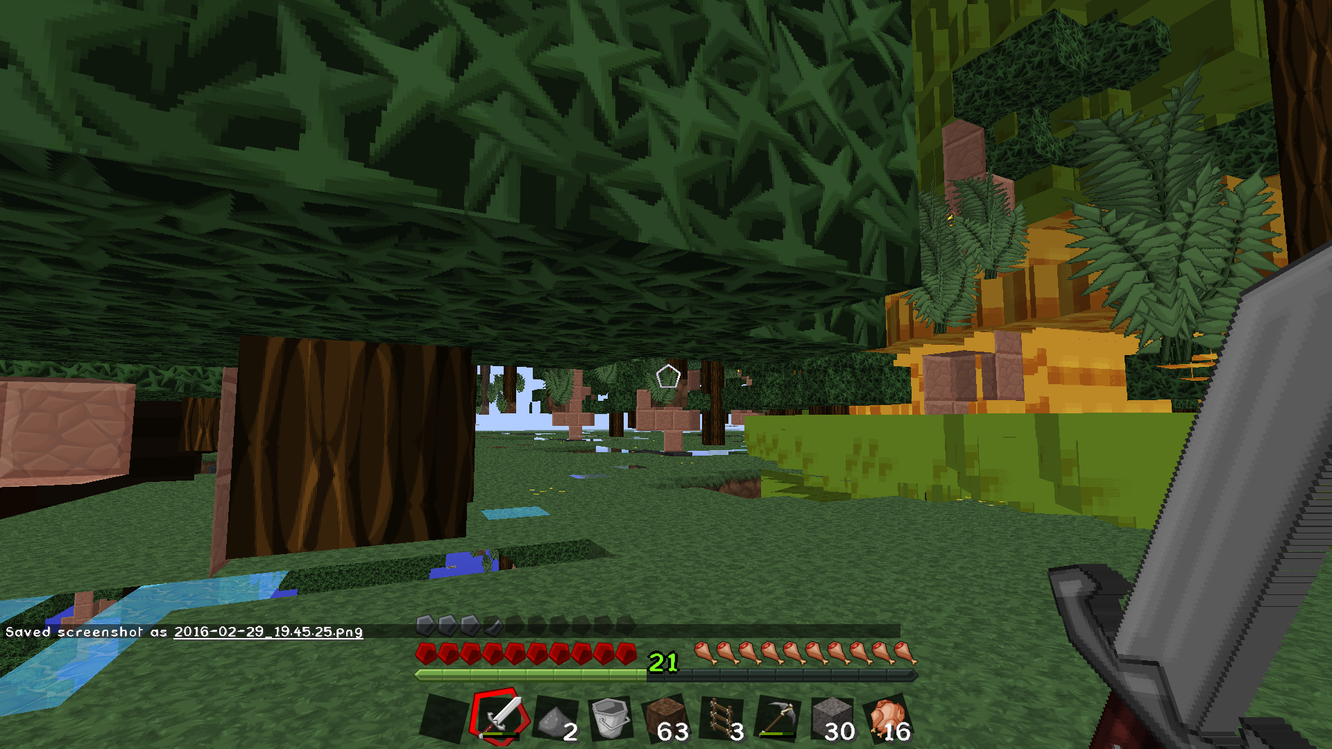 2016-02-29_19.45.47.png Shows the sky grid of chunks previously mentioned. The landscape in this image would usually be littered with trees and a hill nearby, but instead is replaced with a repeated plain grass area, which may I add is viewed through a series of wooden plank walls.