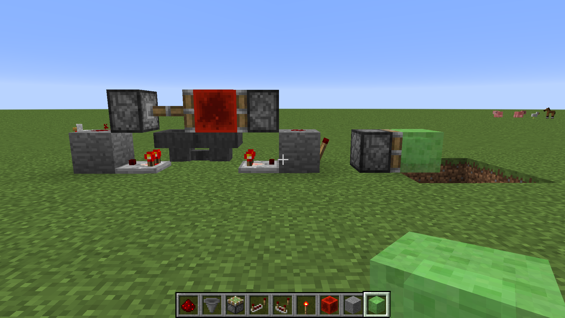 3. Move about 100 blocks away, then return, and observe duplicated slime block.