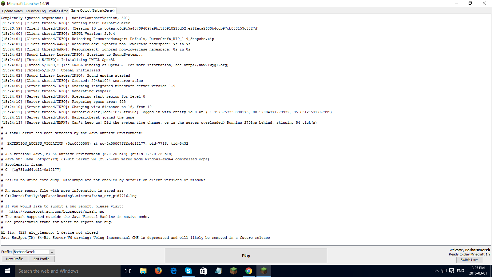 Whenever I load ANY WORLD (like I tried creating a world in 1.9 and I tried loading a world that I created in 1.8 and the pre-1.9 snapshots) Minecraft 1.9