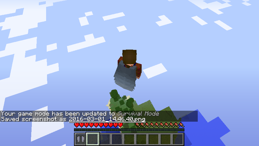 The screenshots clearly show the player falling towards the ground with the Elytra attached, but not gliding.