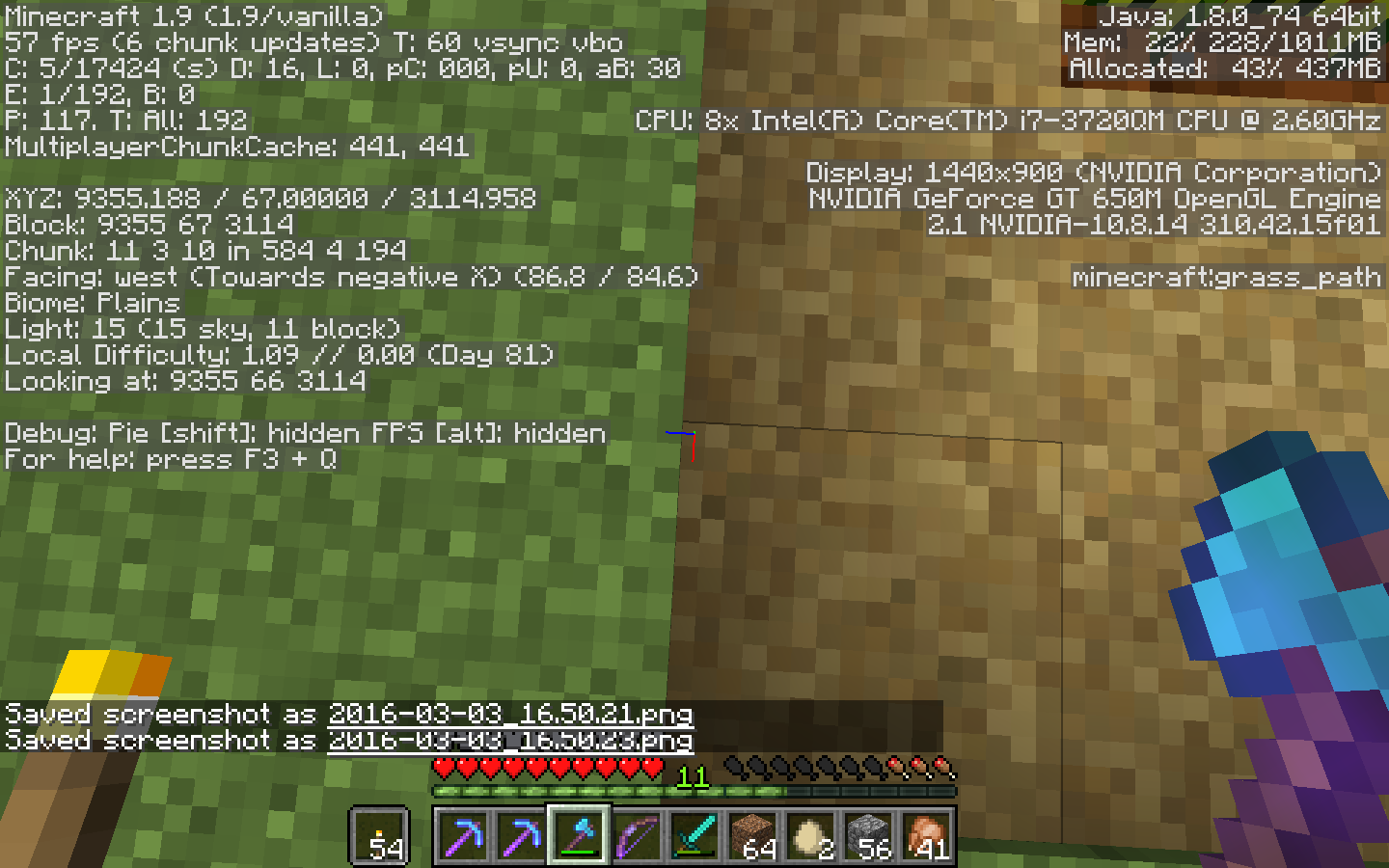 Images show, one from me standing on grass next to path block, Light level 15