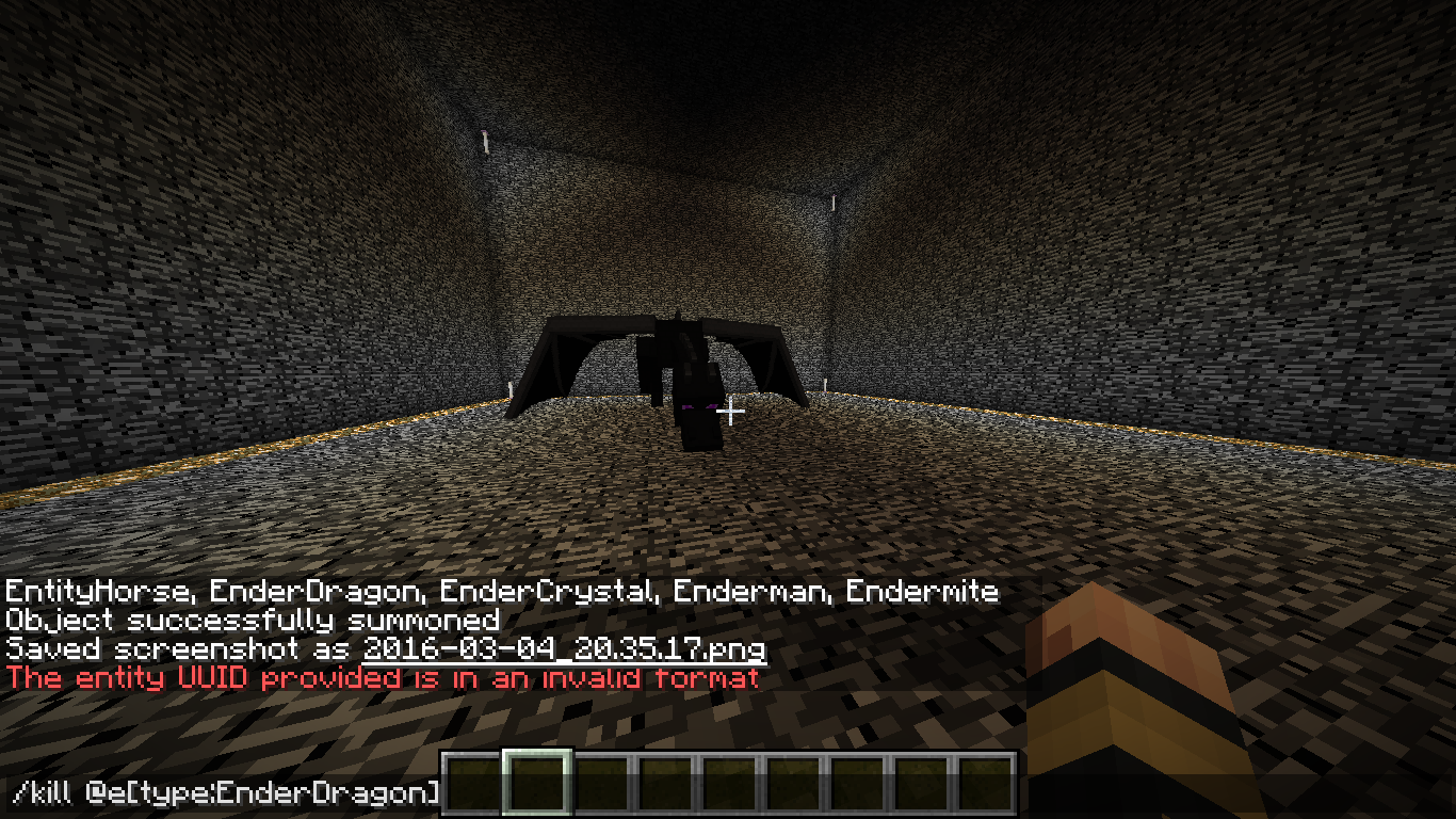 The entity UUID provided is in an invalid format/kill @e[type:EnderDragon]