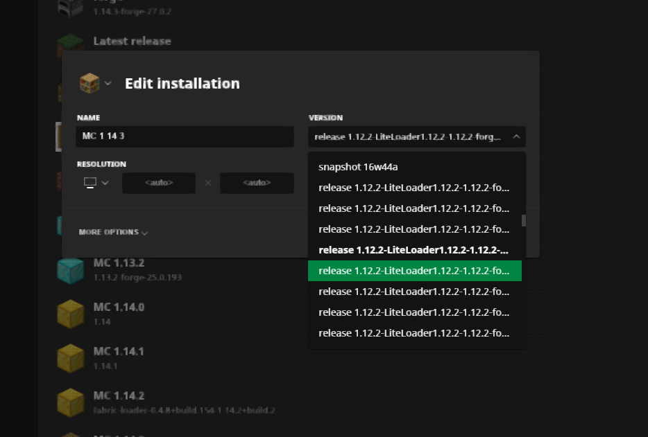 Ich möchte damit sagen das die Auswahl der Minecraft version nicht auswählen kann wenn die Bezeichnung im Scrolldownwindow sehr lang ist. Eine installationen von Force Liteloader oder Fabric eine Lange Bezeichnung hat kann ich am ende nicht sehen welche version von Forge ich wähle. es ist am Ende immer abgeschnitten.