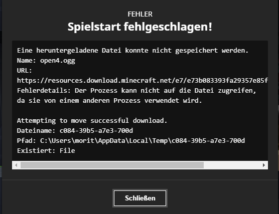 Jedes mal wenn ich auf spielen drucke kommt diese Fehlermeldung bitte um Lösungsvorschläge