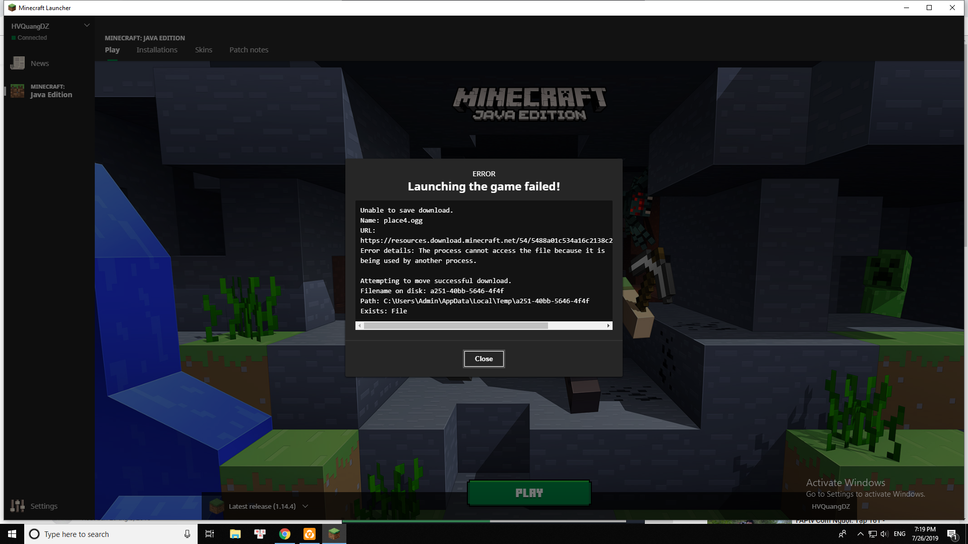 This might be a duplicate of MCL-5546. See if you have ByteFence installed on your computer, which may be preventing files from saving. Alternatively, check the other incompatible software with Minecraft.