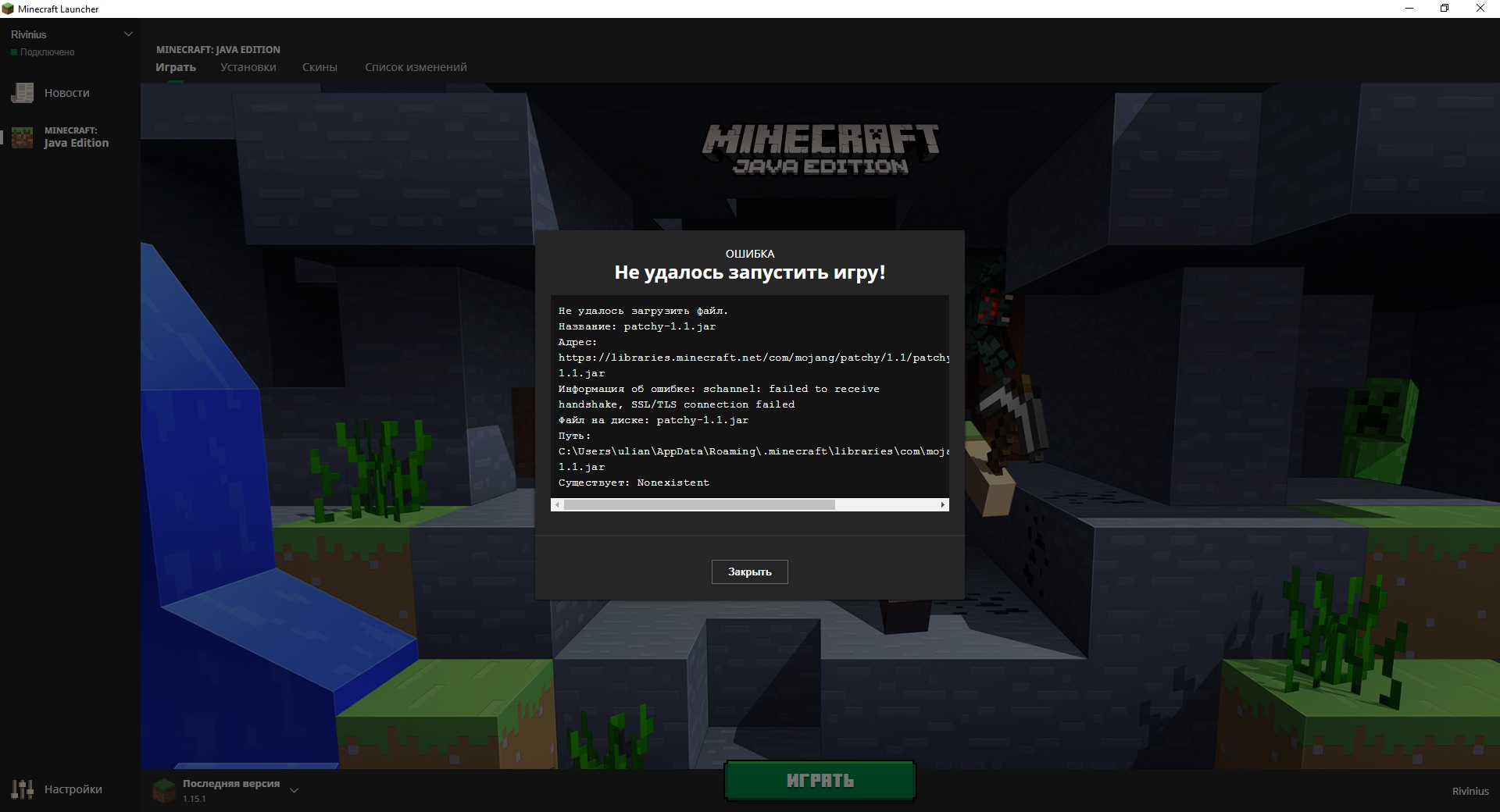 Path: C: \ Users \ ulian \ AppData \ Roaming \ .minecraft \ libraries \ com \ mojang \ patchy \ 1.1 \ patchy-1.1.jar