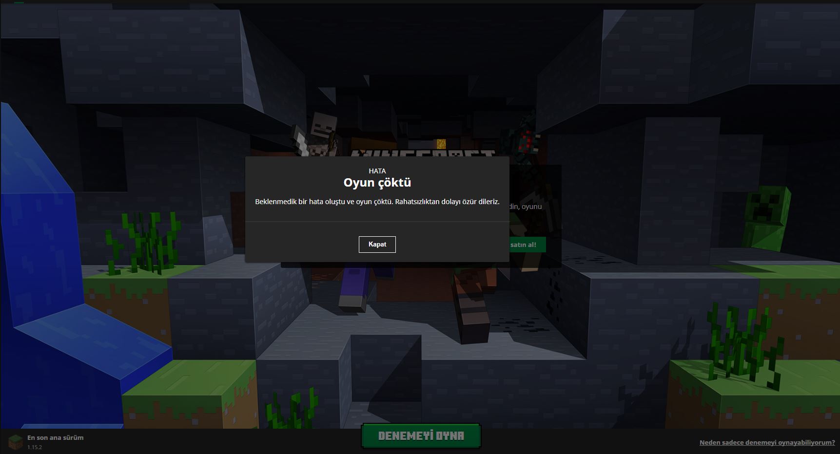 An unexpected error occurred and the game crashed. We apologize for the inconvenience.