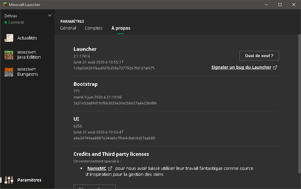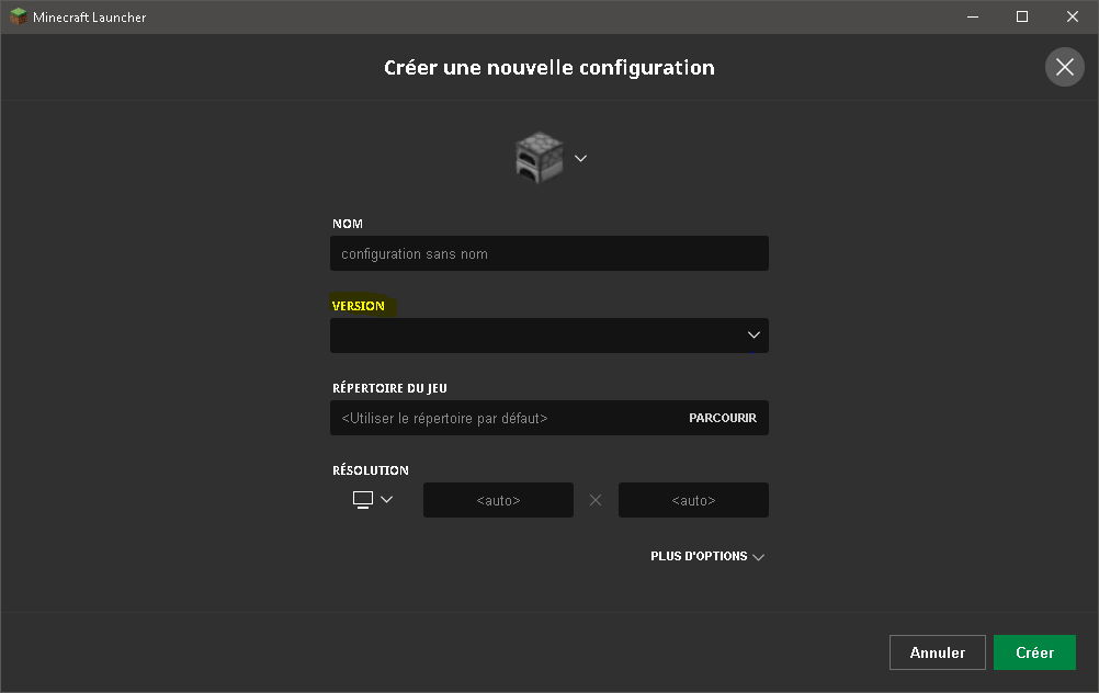 Lors de l'installation de Minecraft Launcher, j'ai un menu vide pour le choix de la version à installé rendant le jeu in opérationnel.