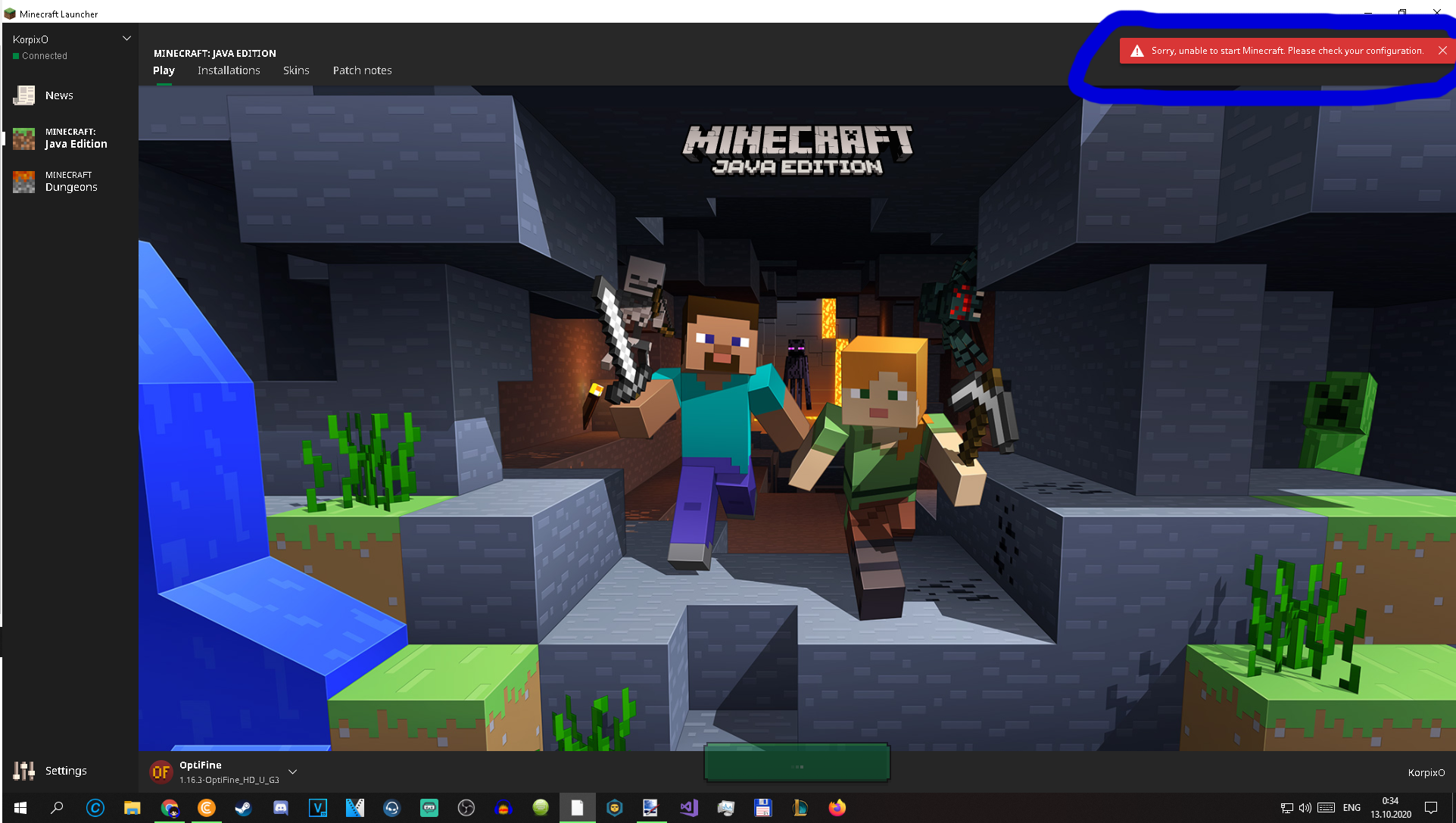Hello, I have issue, when I click on play button, it will show up error: "Sorry, unable to start Minecraft. Please check your configuration"