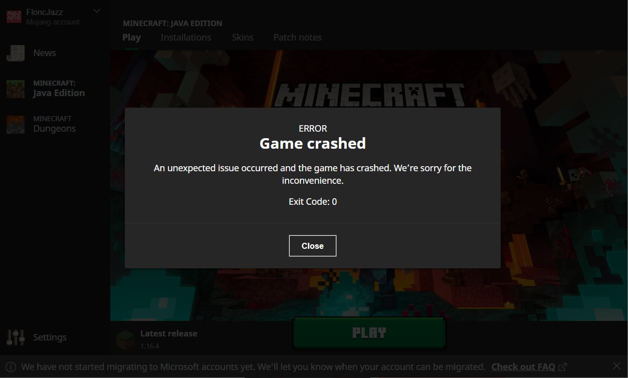 My Minecraft Java Edition won't start at all showing only "Exit Code: 0" with no possibility of getting a crash report and Minecraft game output window shows no log output whatsoerver. I just got a new computer, wanted to start it, it doesn't do anything. When trying to make the launcher go through troubleshooting, it says only "Incompatible program - Not solved".