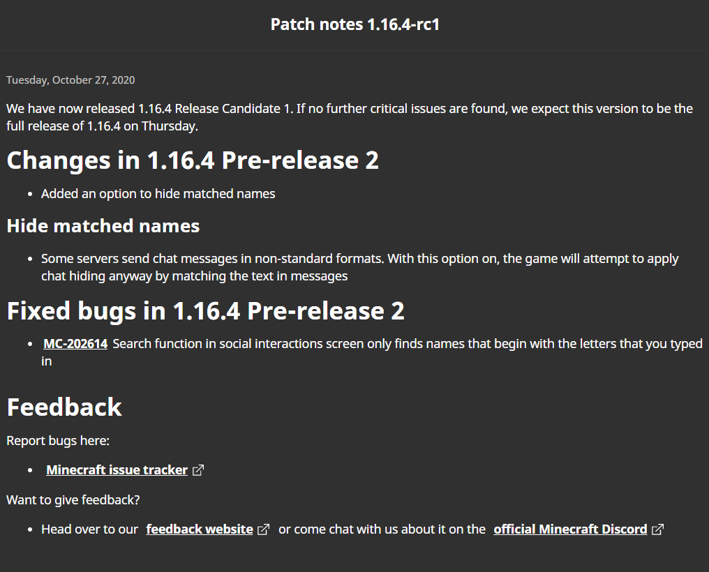 When I see 1.16.4 rc-1, it says 1.16.4 pre-release 2 instead.