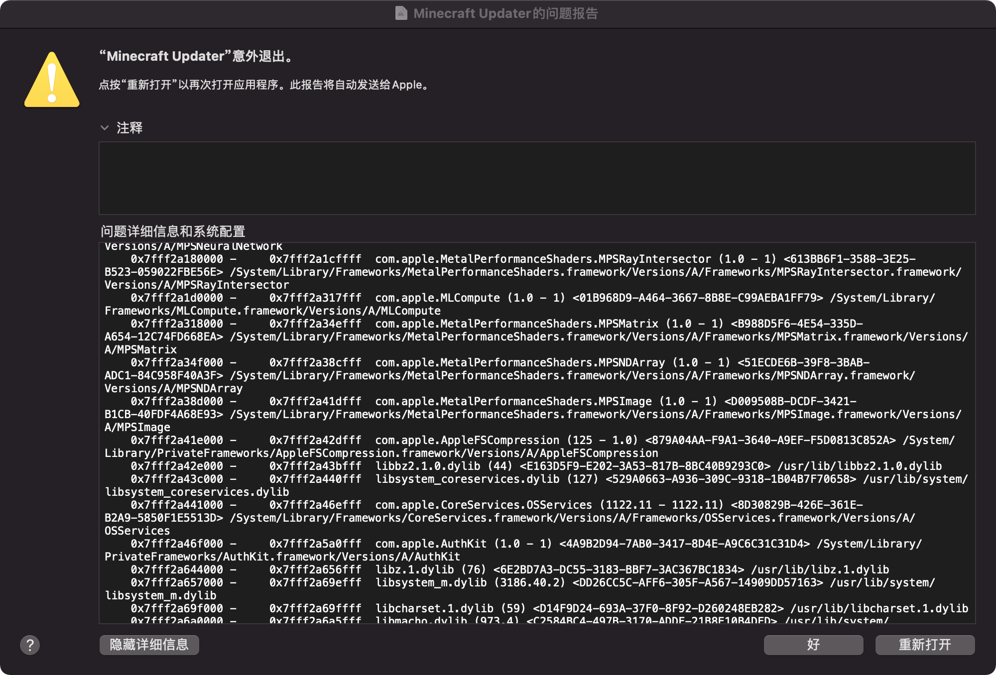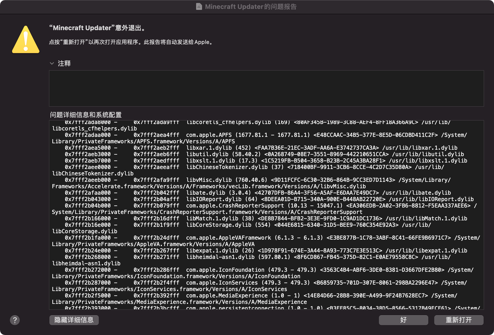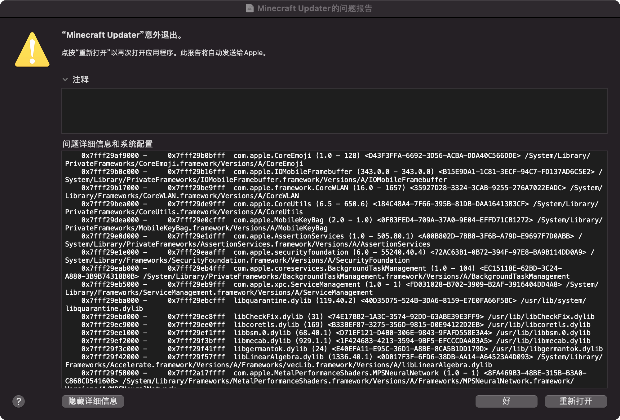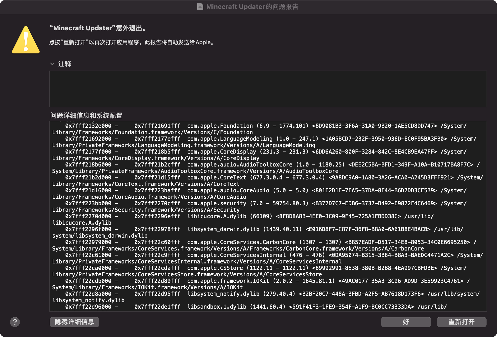 Please attach crash reports, log files and screenshots as they are instead of pasting them into a document.