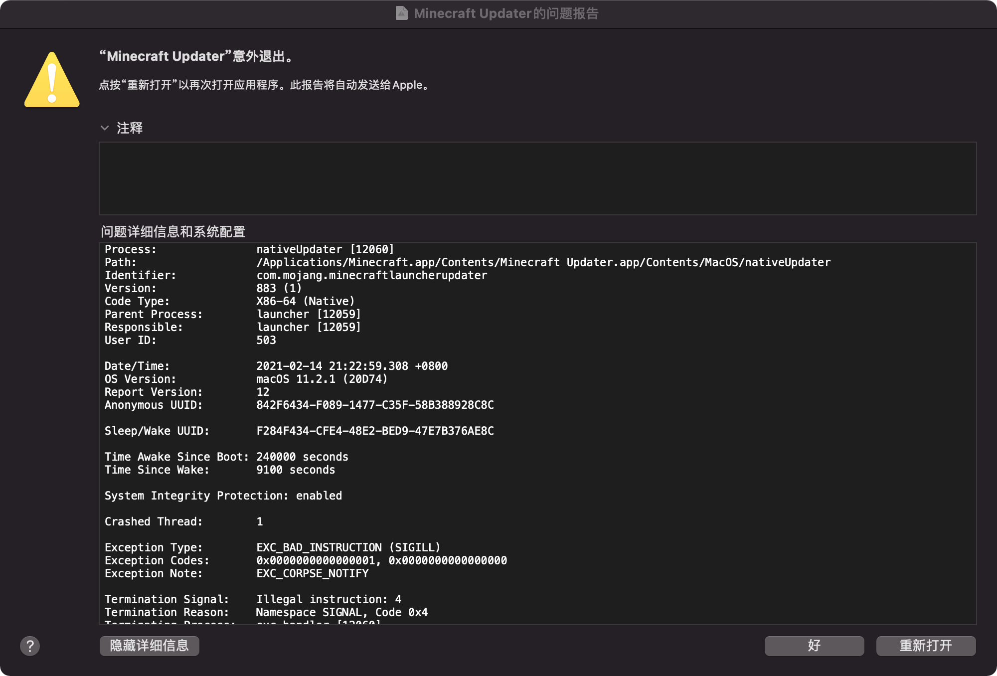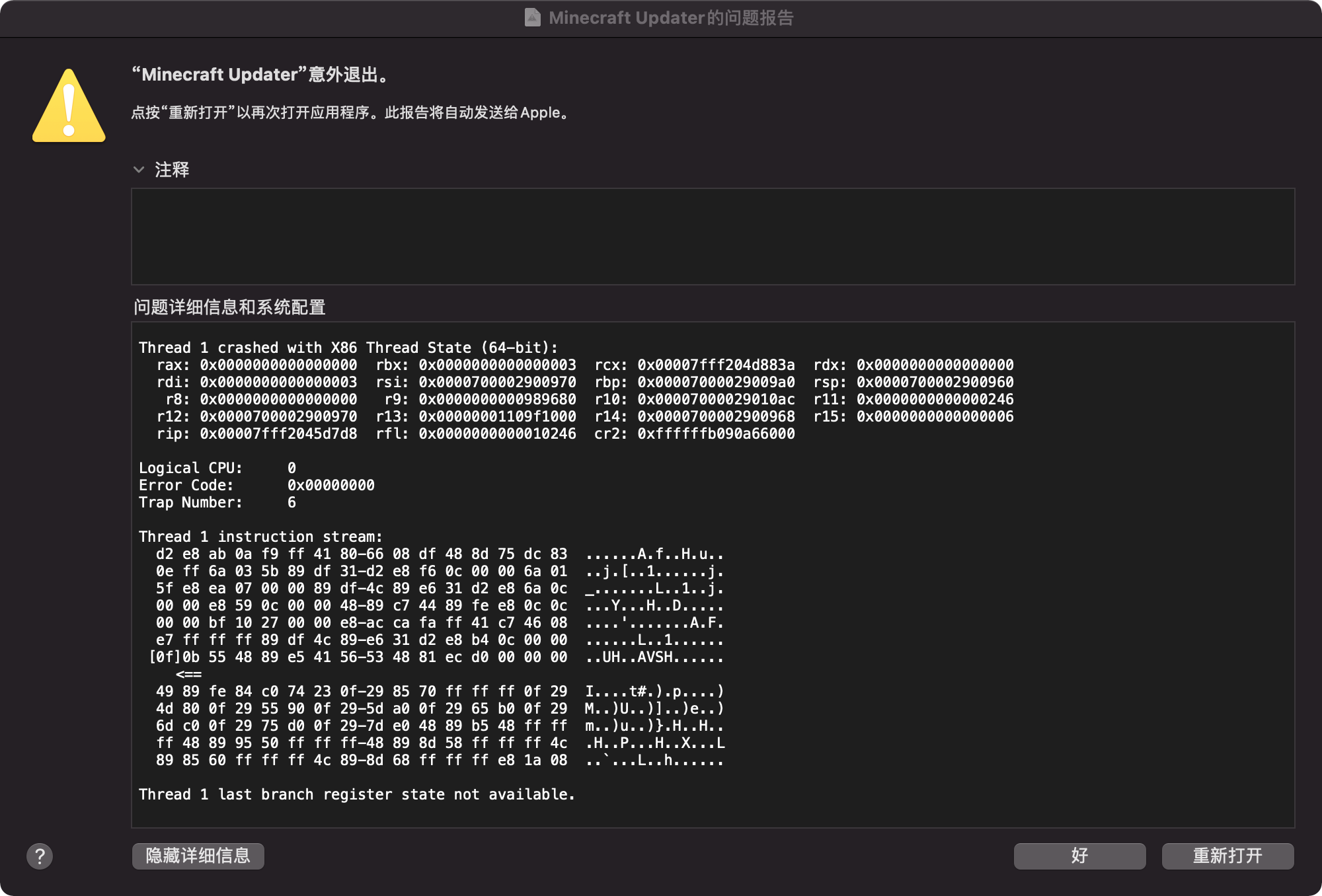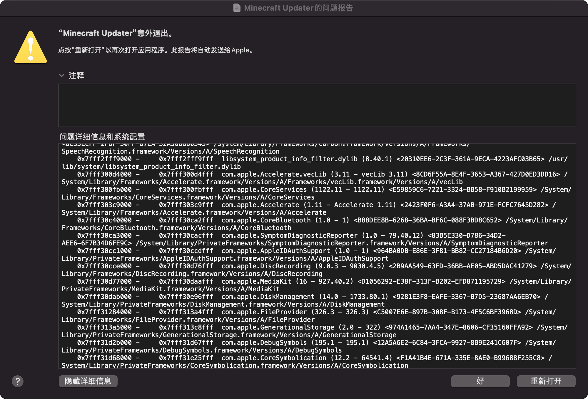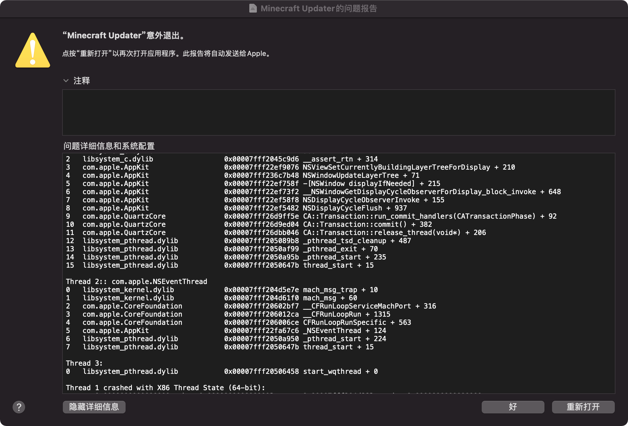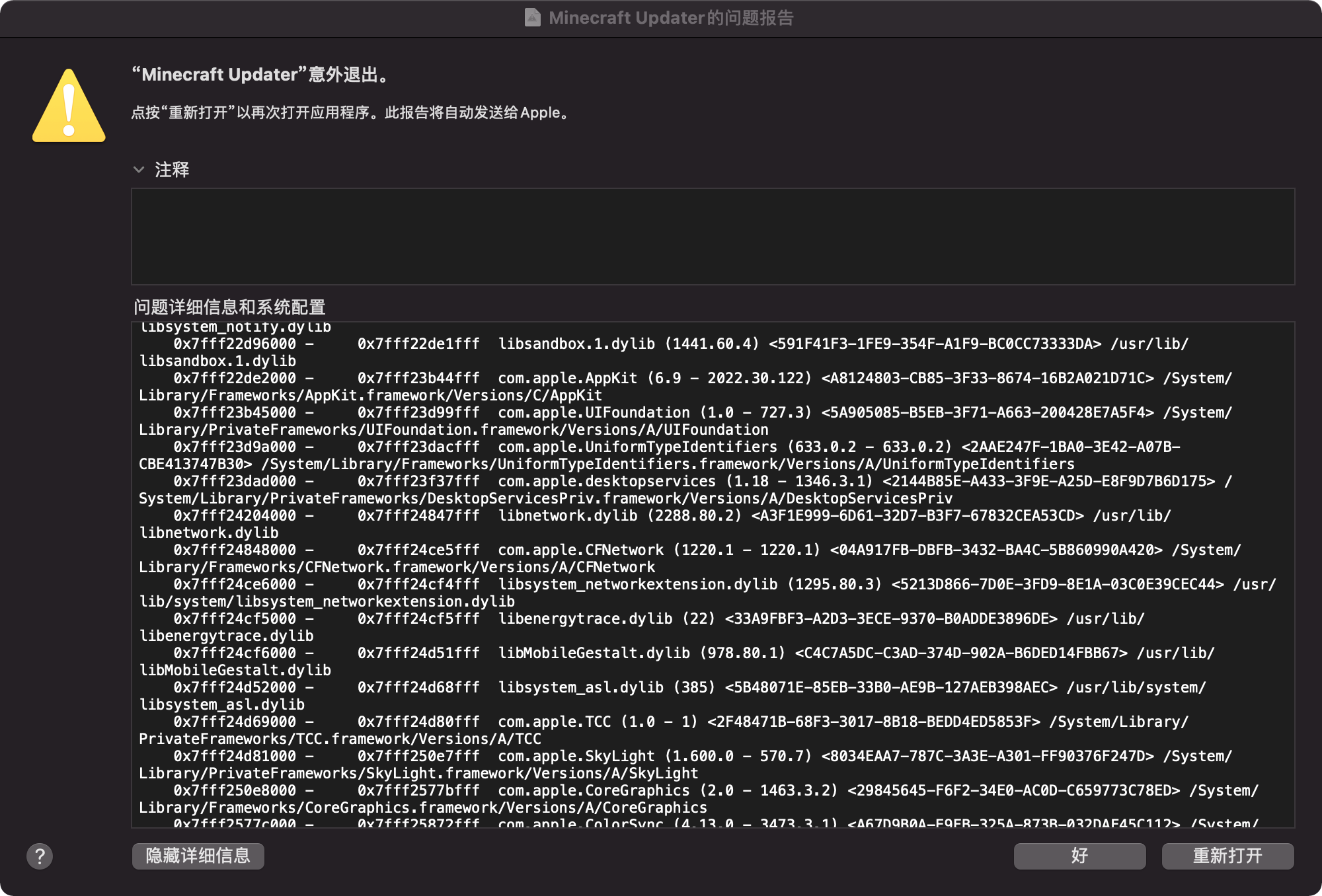 Please attach crash reports, log files and screenshots as they are instead of pasting them into a document.